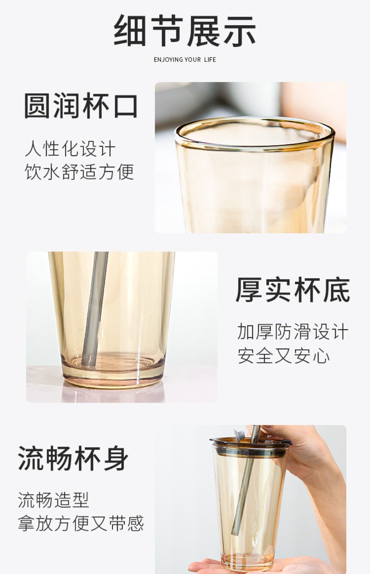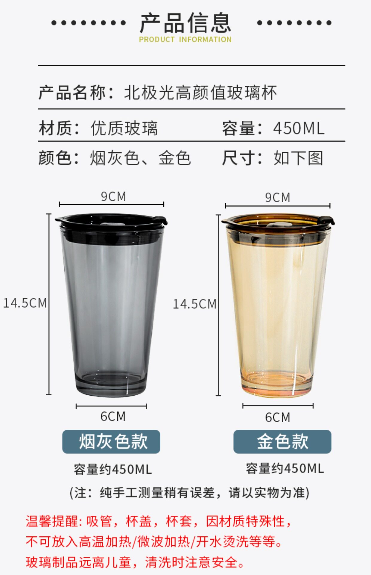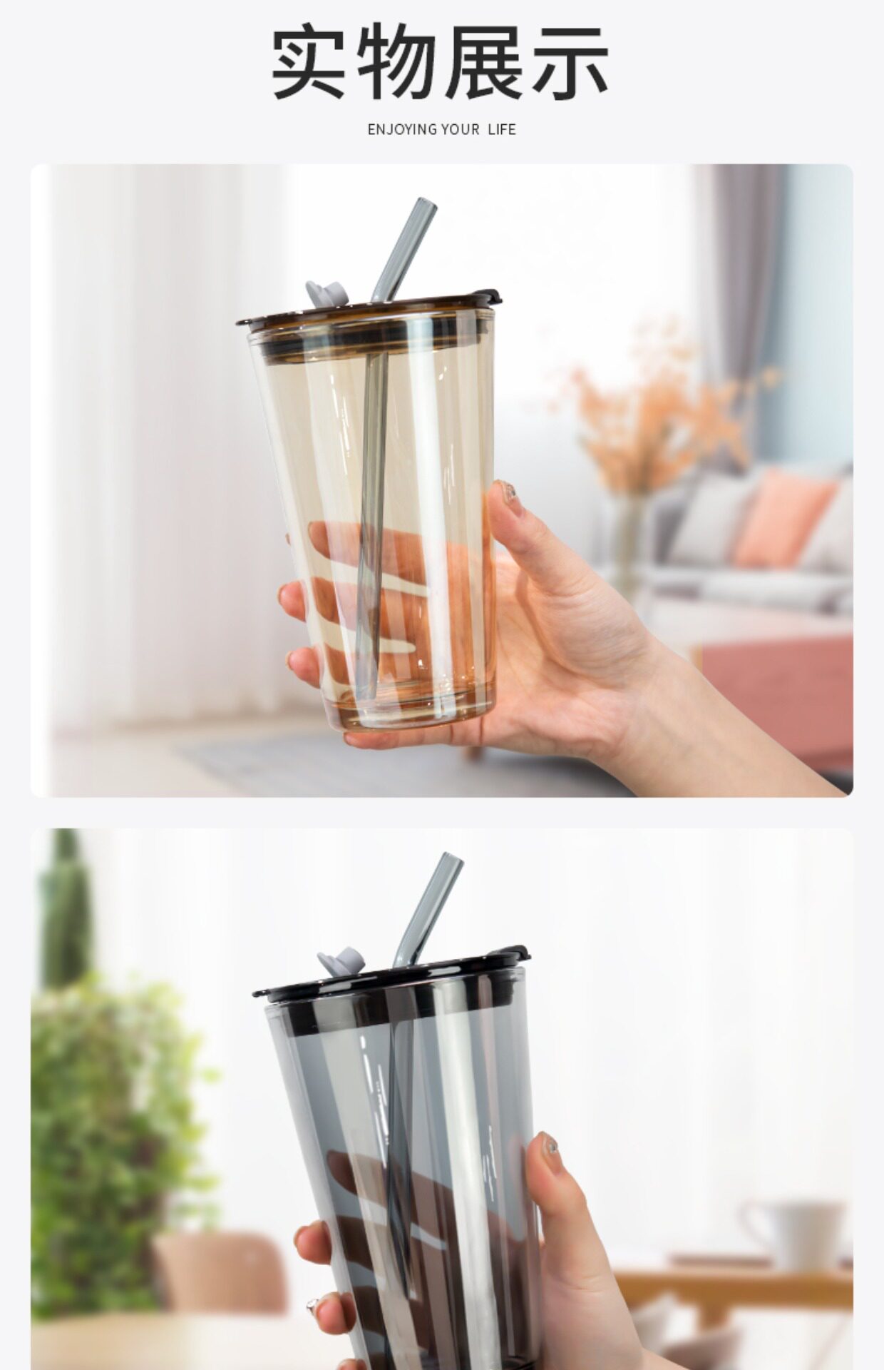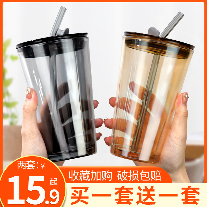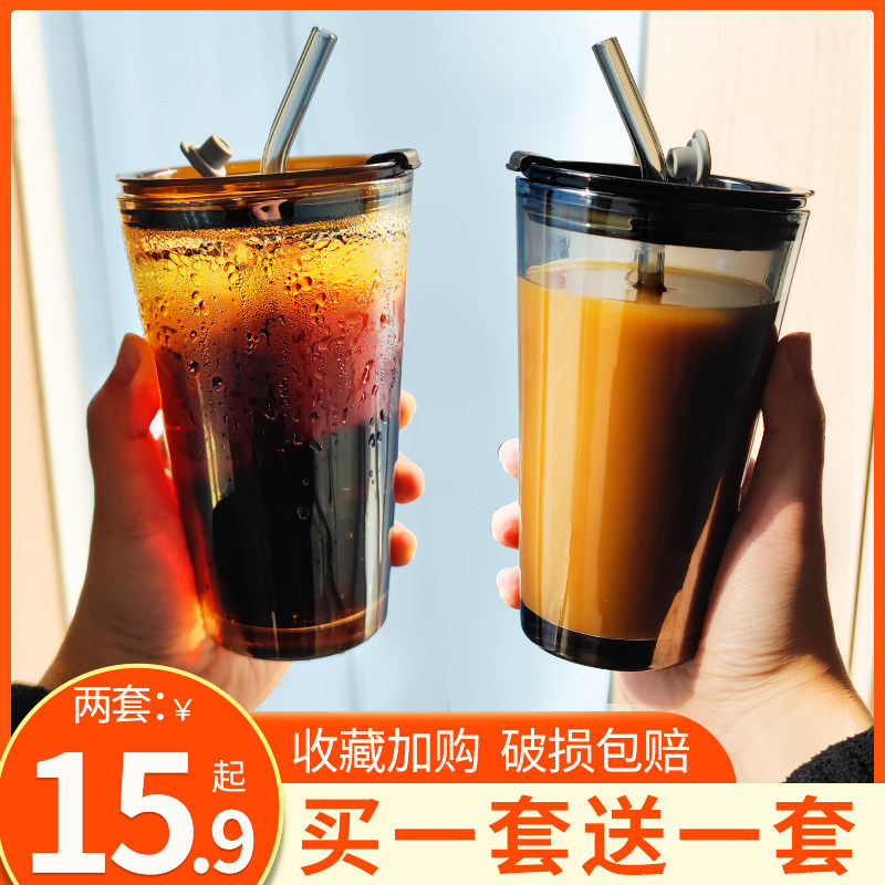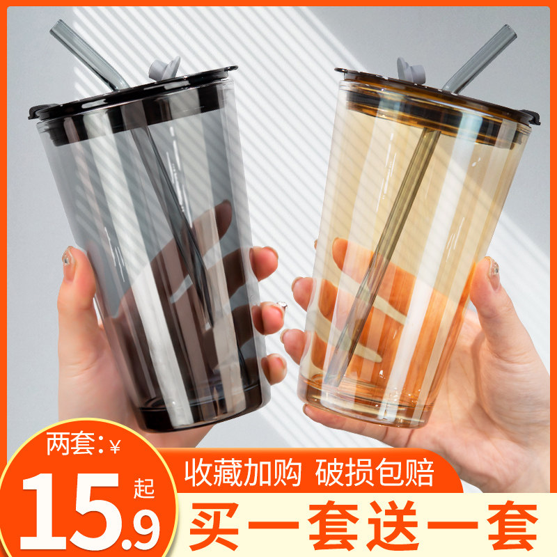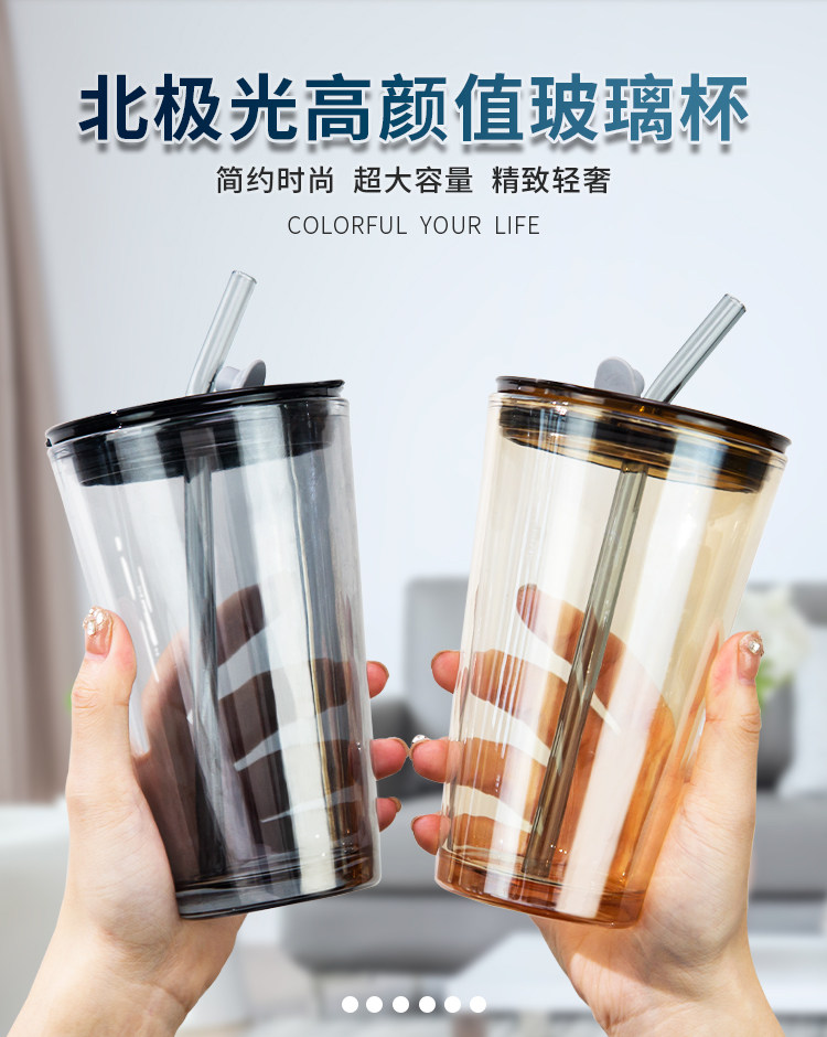 - Янтарная крышка для стакана, стеклянная трубочка, 450 мл