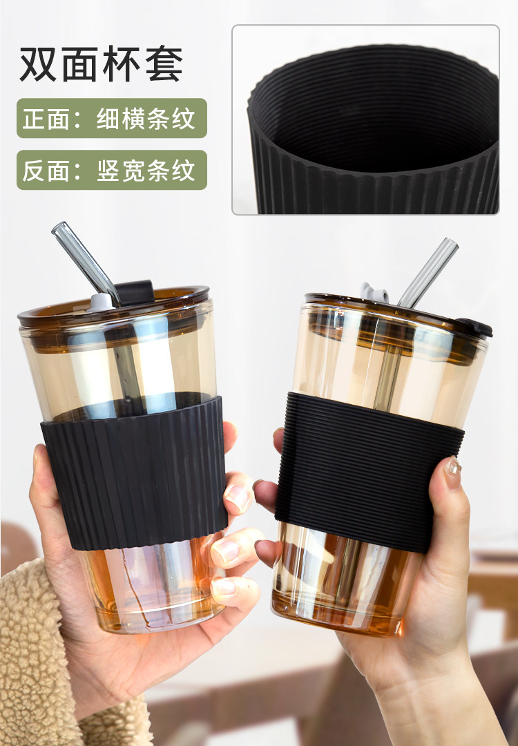 - Янтарная крышка для стакана, силиконовая трубочка, 450 мл