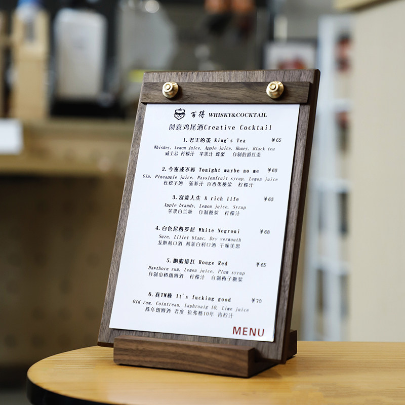 Меню из грецкого ореха клип с твердым деревом меню показ бренд кофейный меню доска для писательской доски A4 Wooden Bill Ply