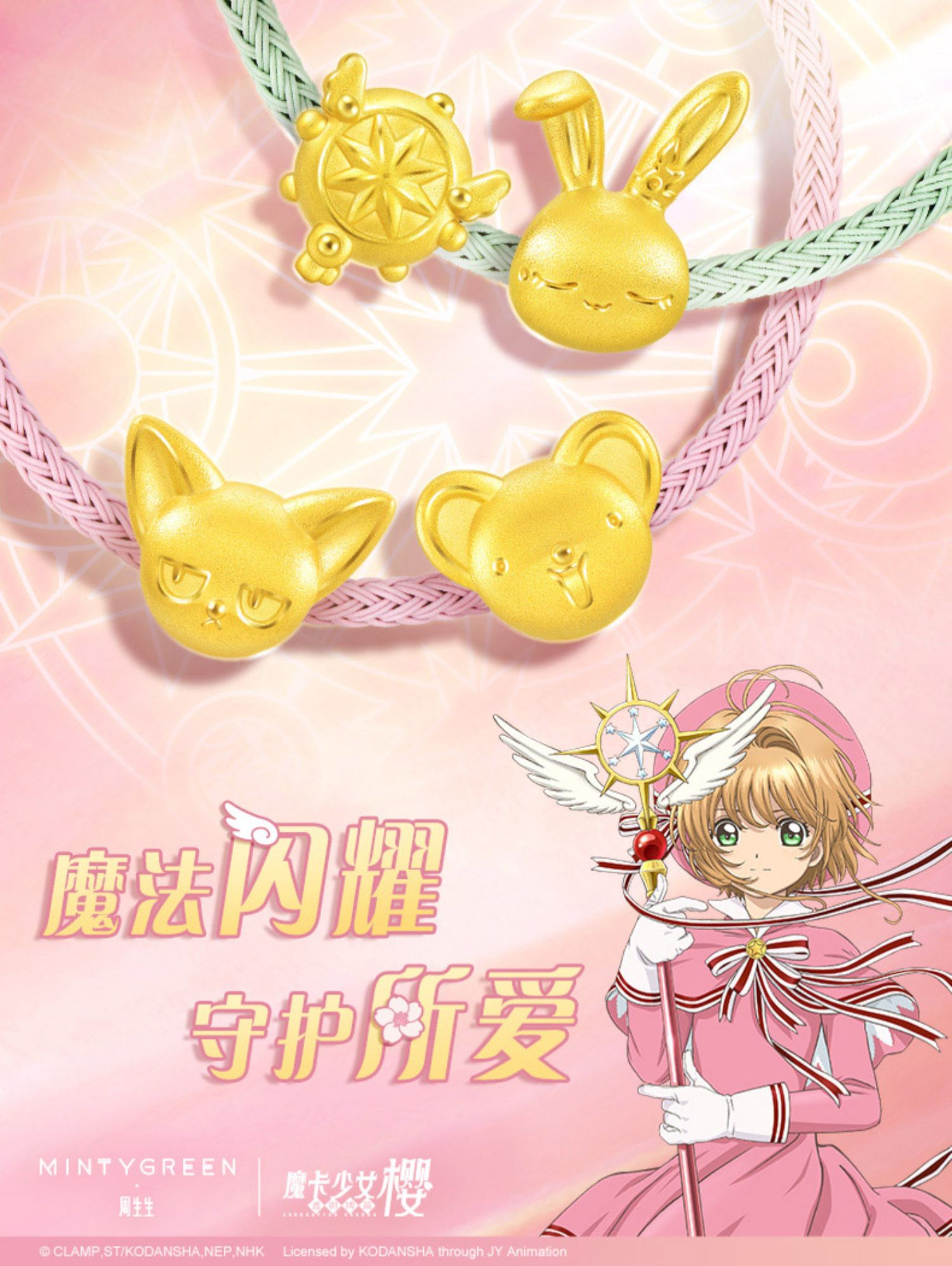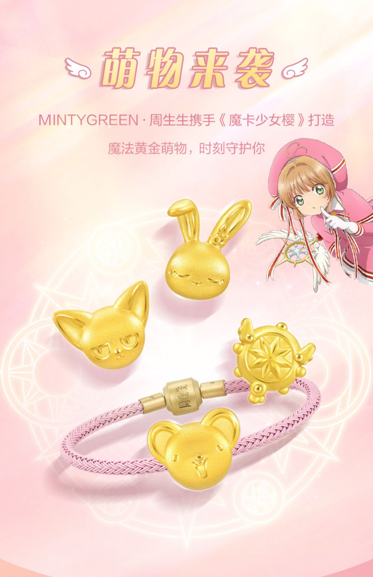 Zhou Shengsheng Magic Card Girl Sakura IP Объединение мечты о том, как Golden Transfer Gearl Gold String Bead Girl 93204C