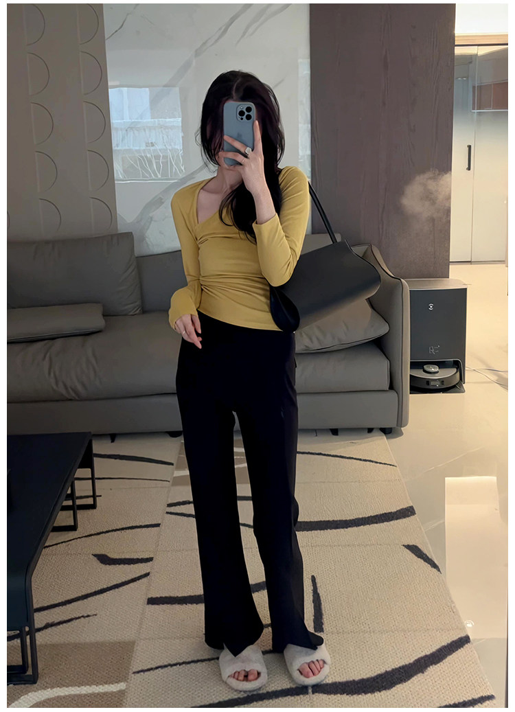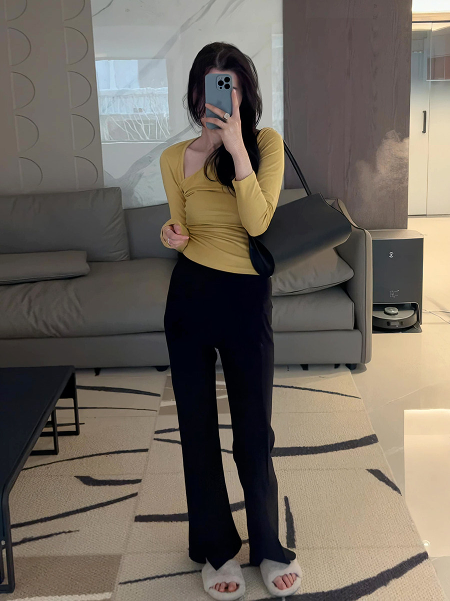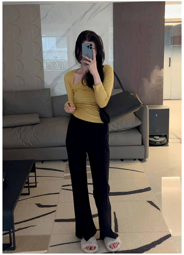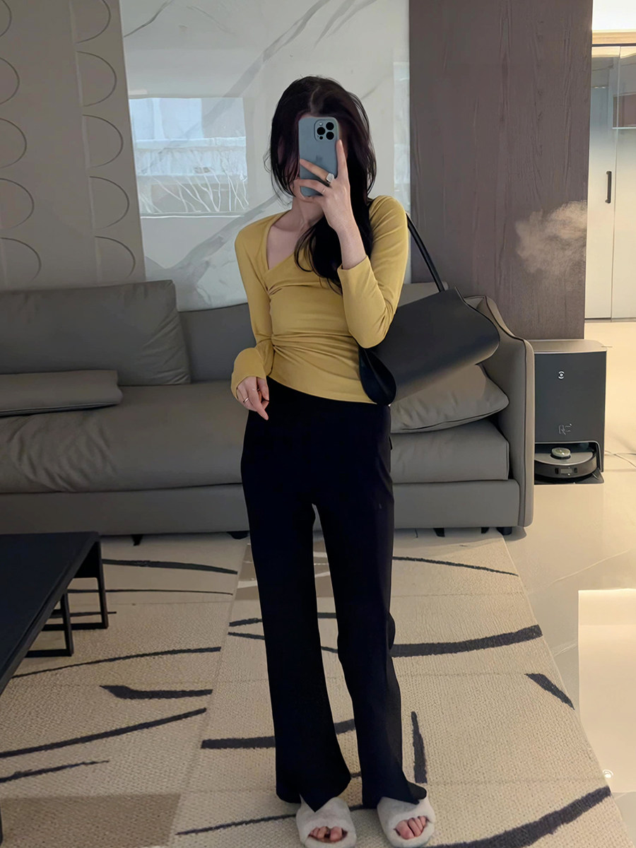 Осенняя ретро сексуальная приталенная приятная телу футболка, 2025 года, в корейском стиле, V-образный вырез