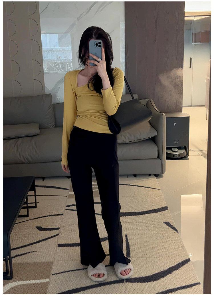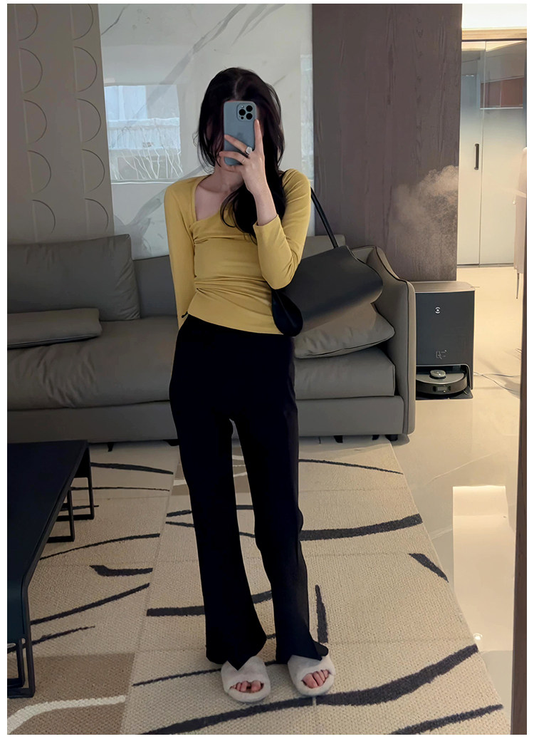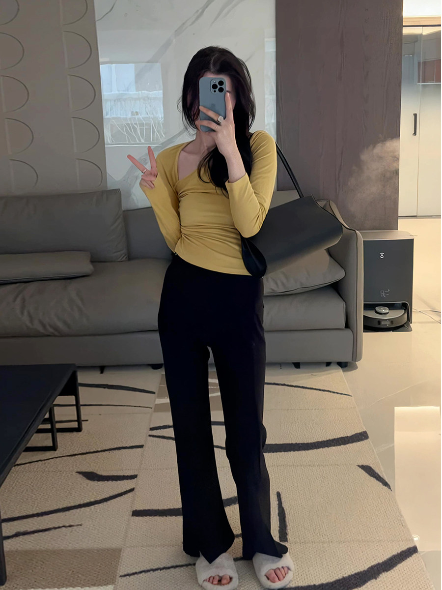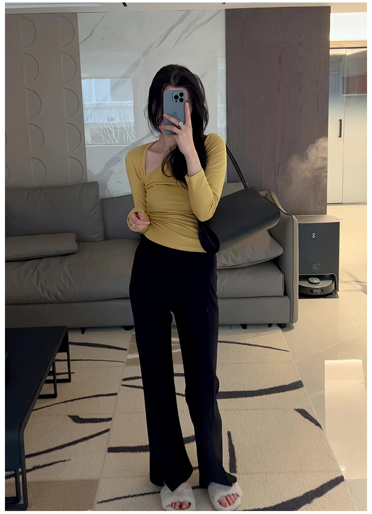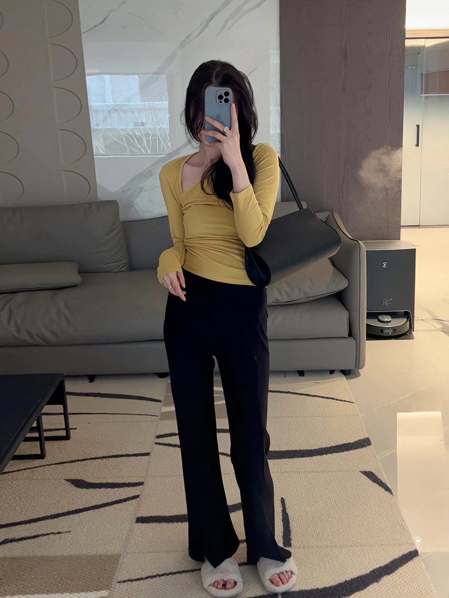 Осенняя ретро сексуальная приталенная приятная телу футболка, 2025 года, в корейском стиле, V-образный вырез