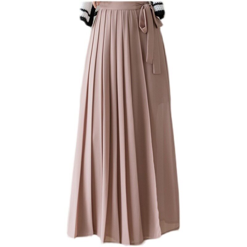 Шифоновая весенняя юбка, летние штаны, длинный ремень, высокая талия, свободный крой