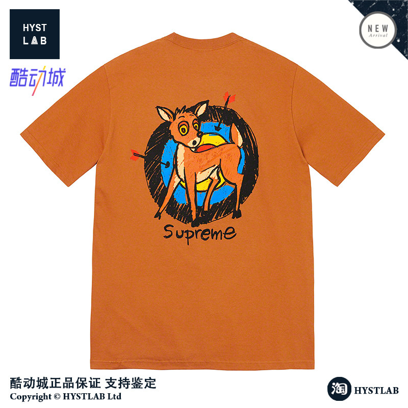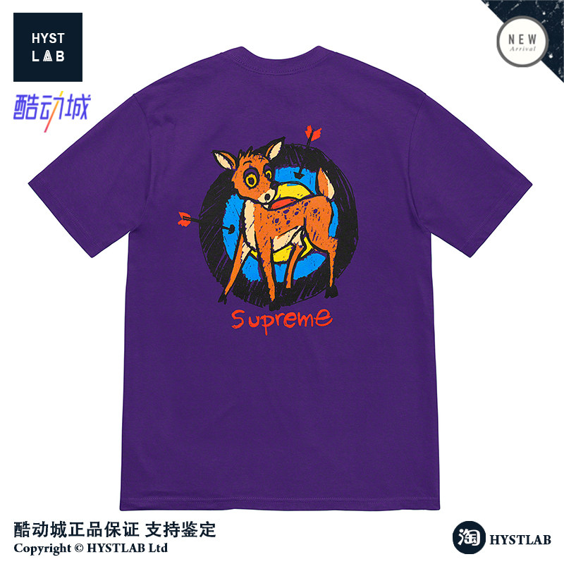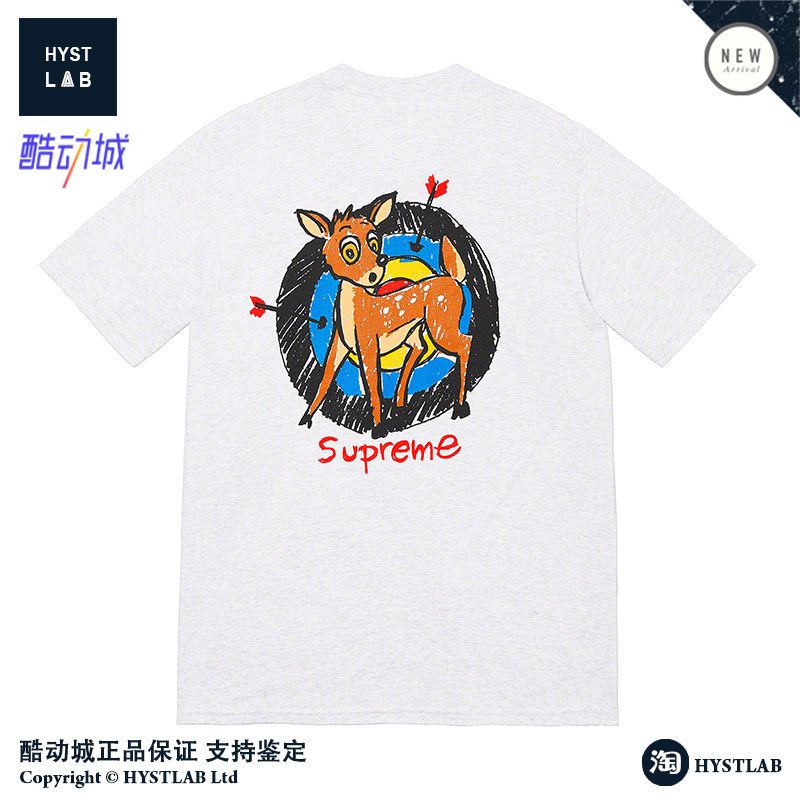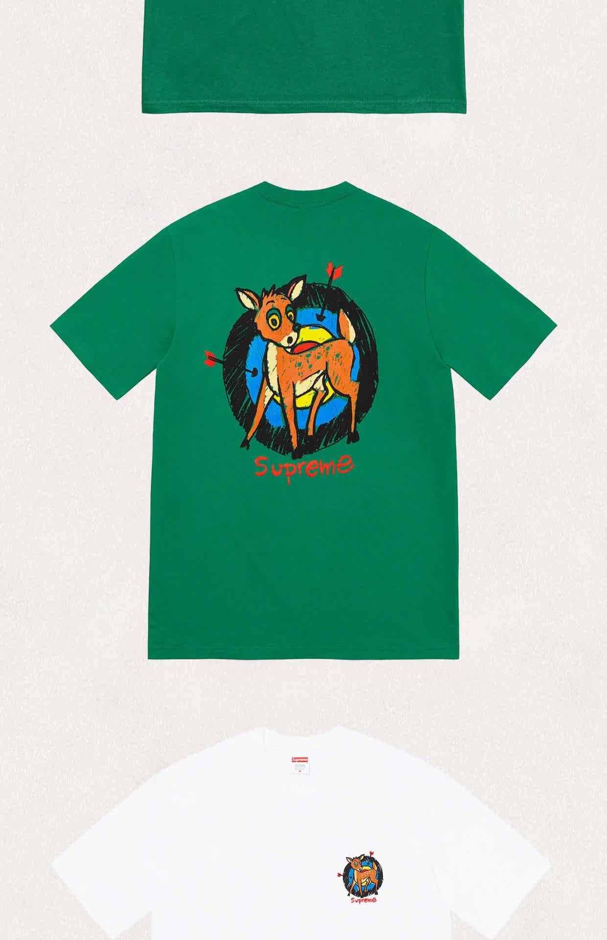 Supreme 22SS Deer Tee Little Deer спираль лука с луком положительный логотип Cartoon Cartoon Chort -sleeed T -For