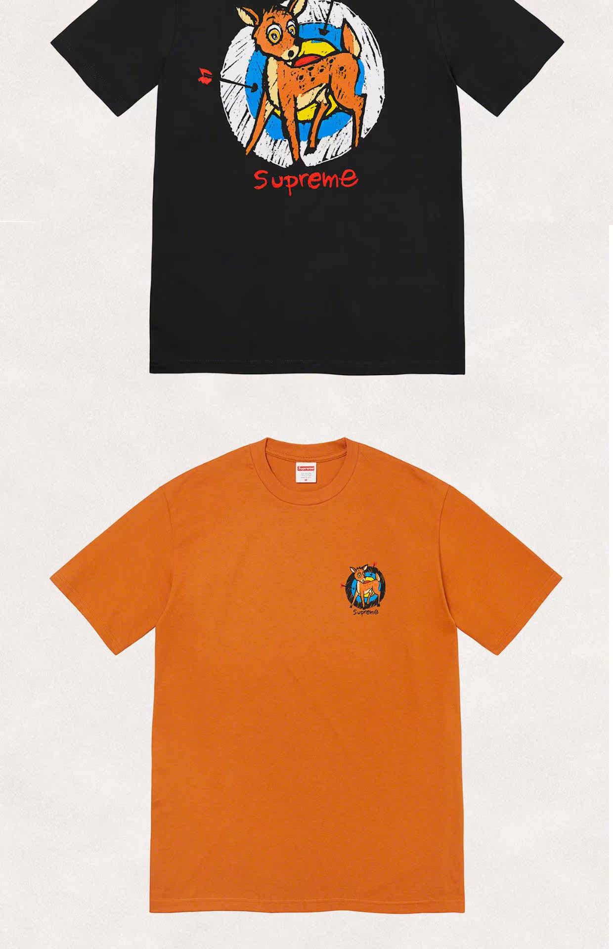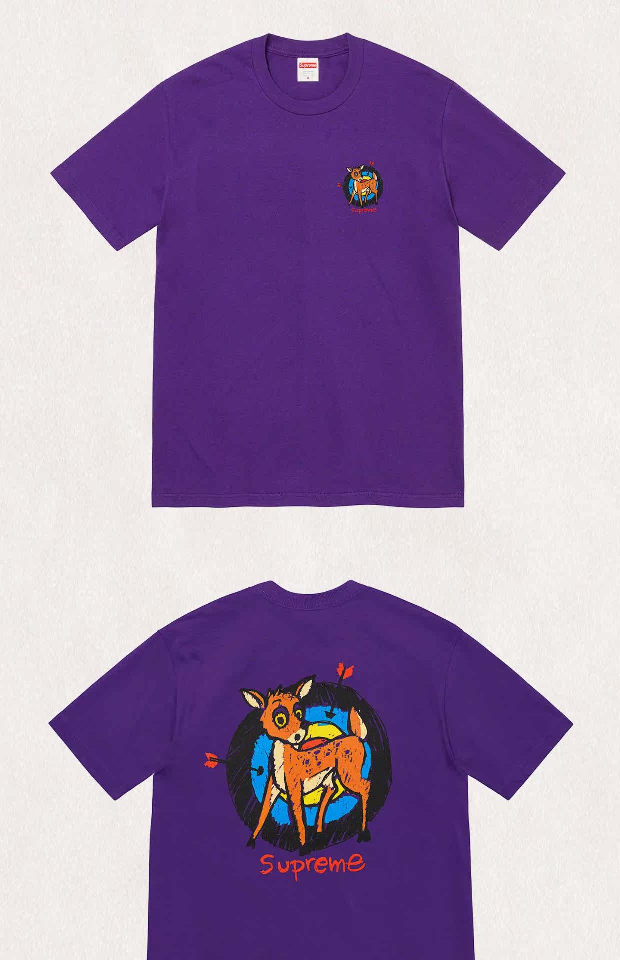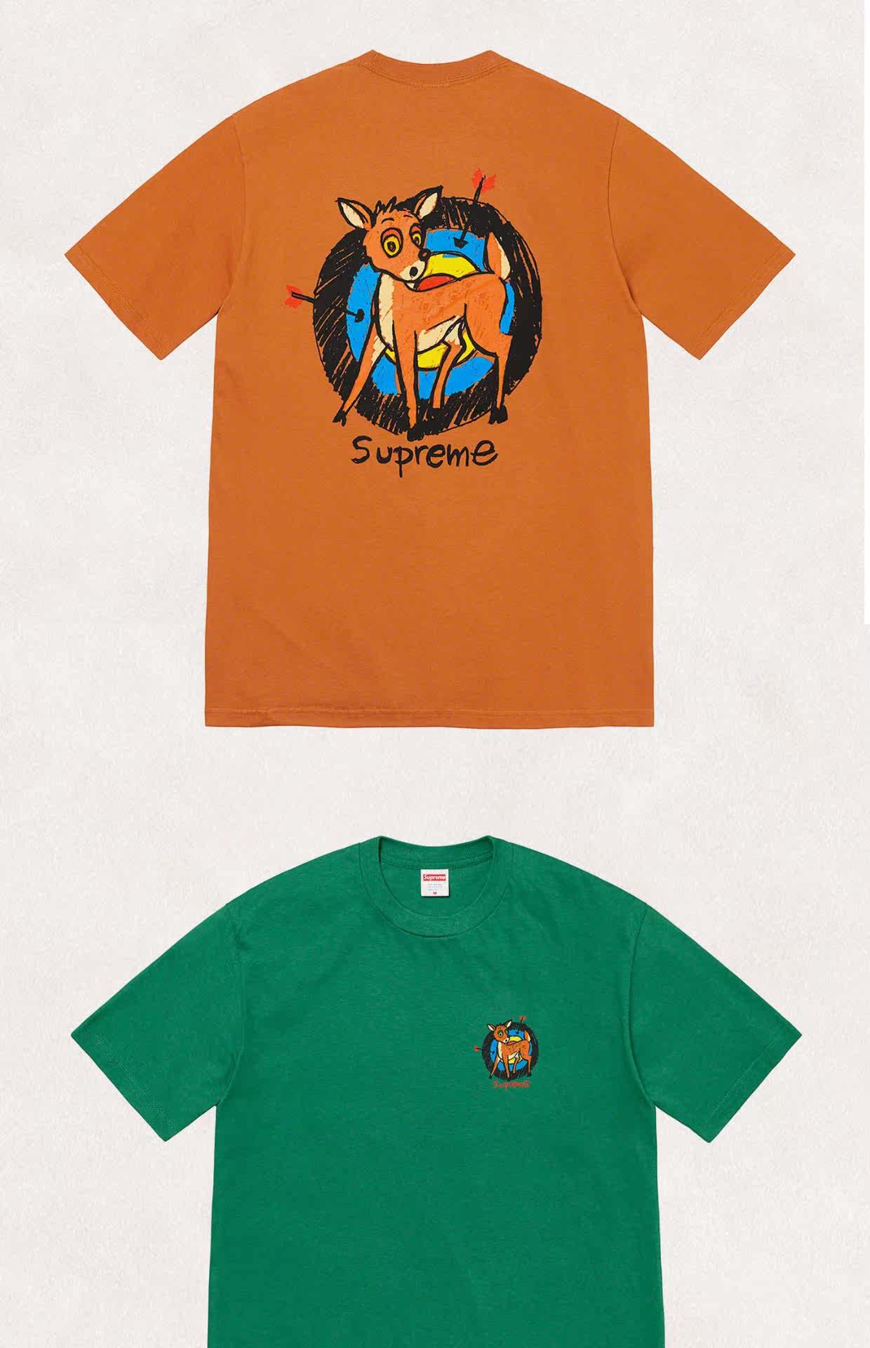 Supreme 22SS Deer Tee Little Deer спираль лука с луком положительный логотип Cartoon Cartoon Chort -sleeed T -For