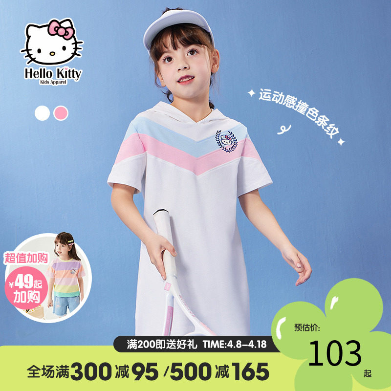 Hello Kitty, летнее спортивное платье с коротким рукавом с капюшоном, детская одежда, подходит для подростков