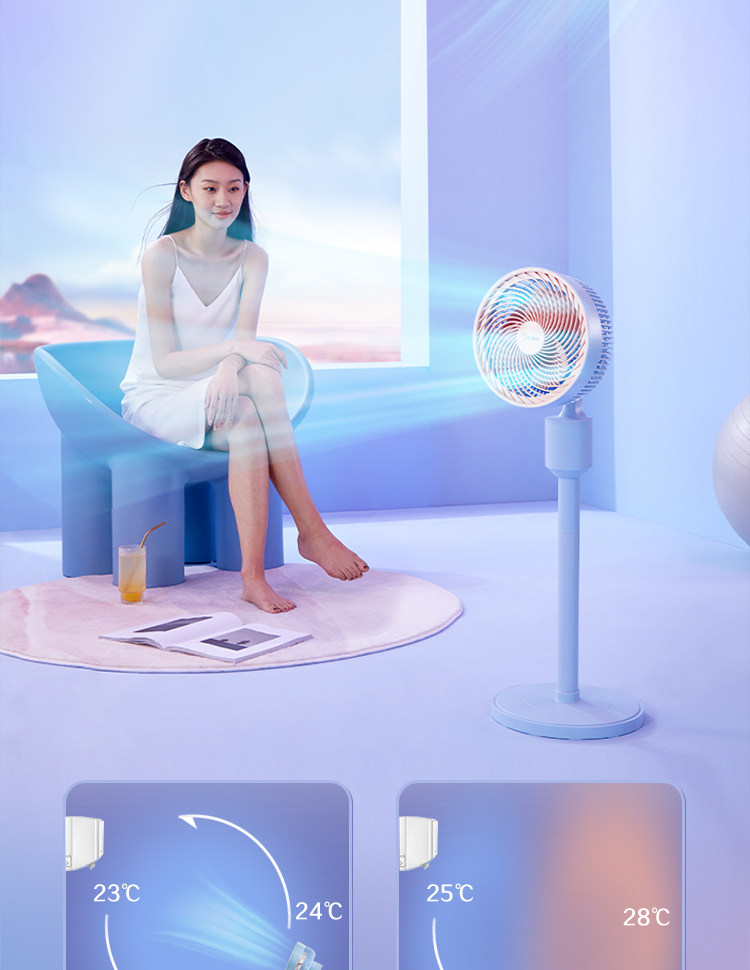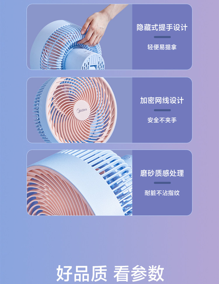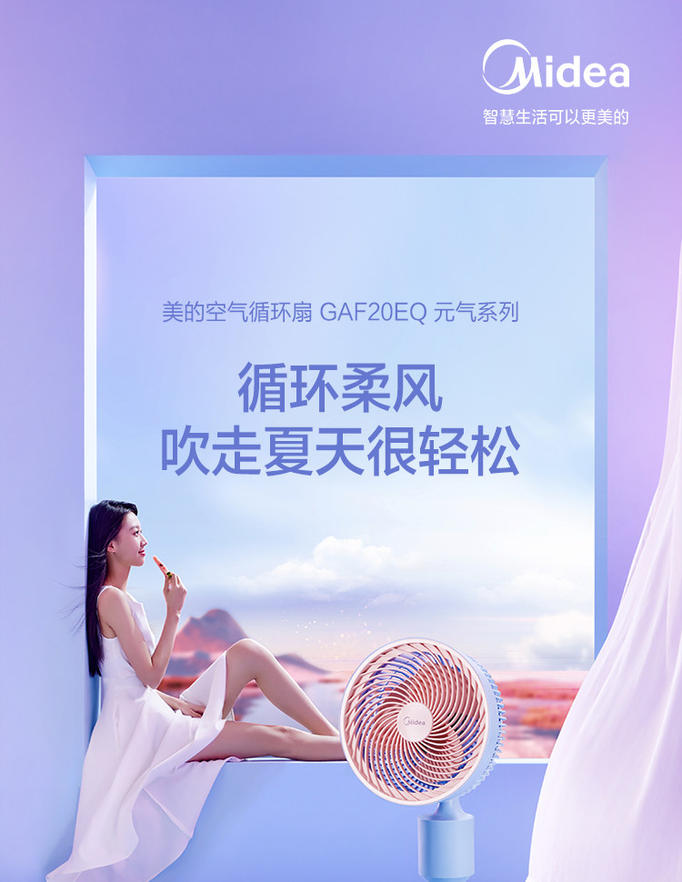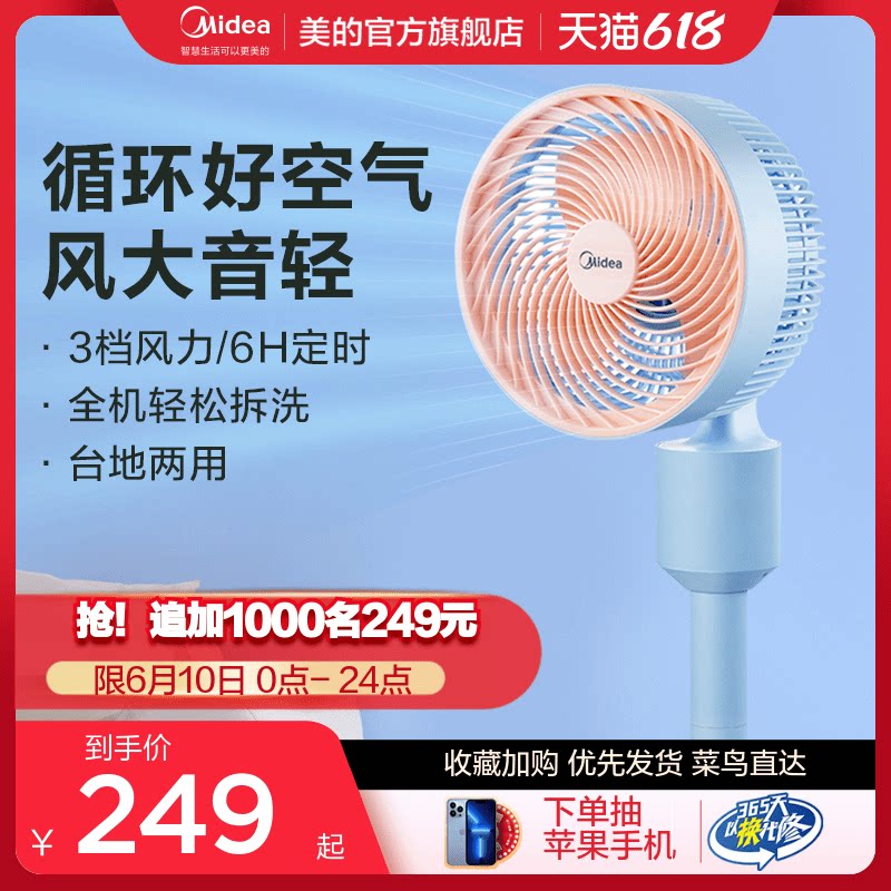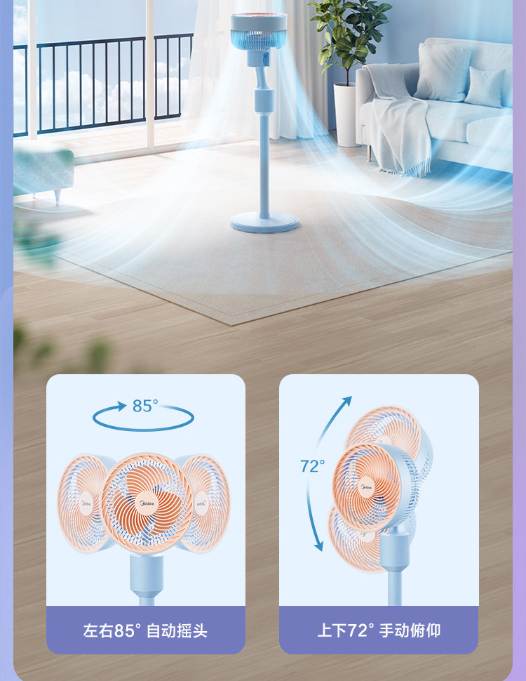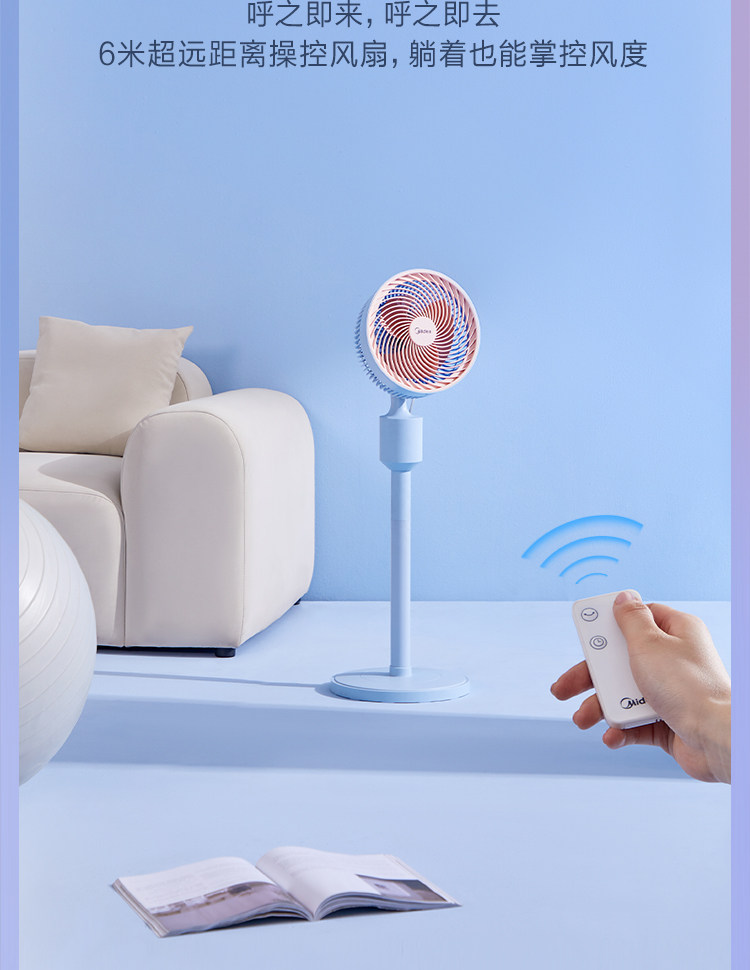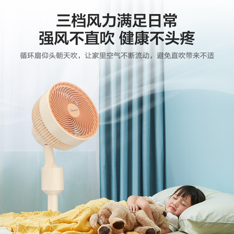 Электрический вентилятор Midea использует энергию и встряхивает головы и сильные ветры.