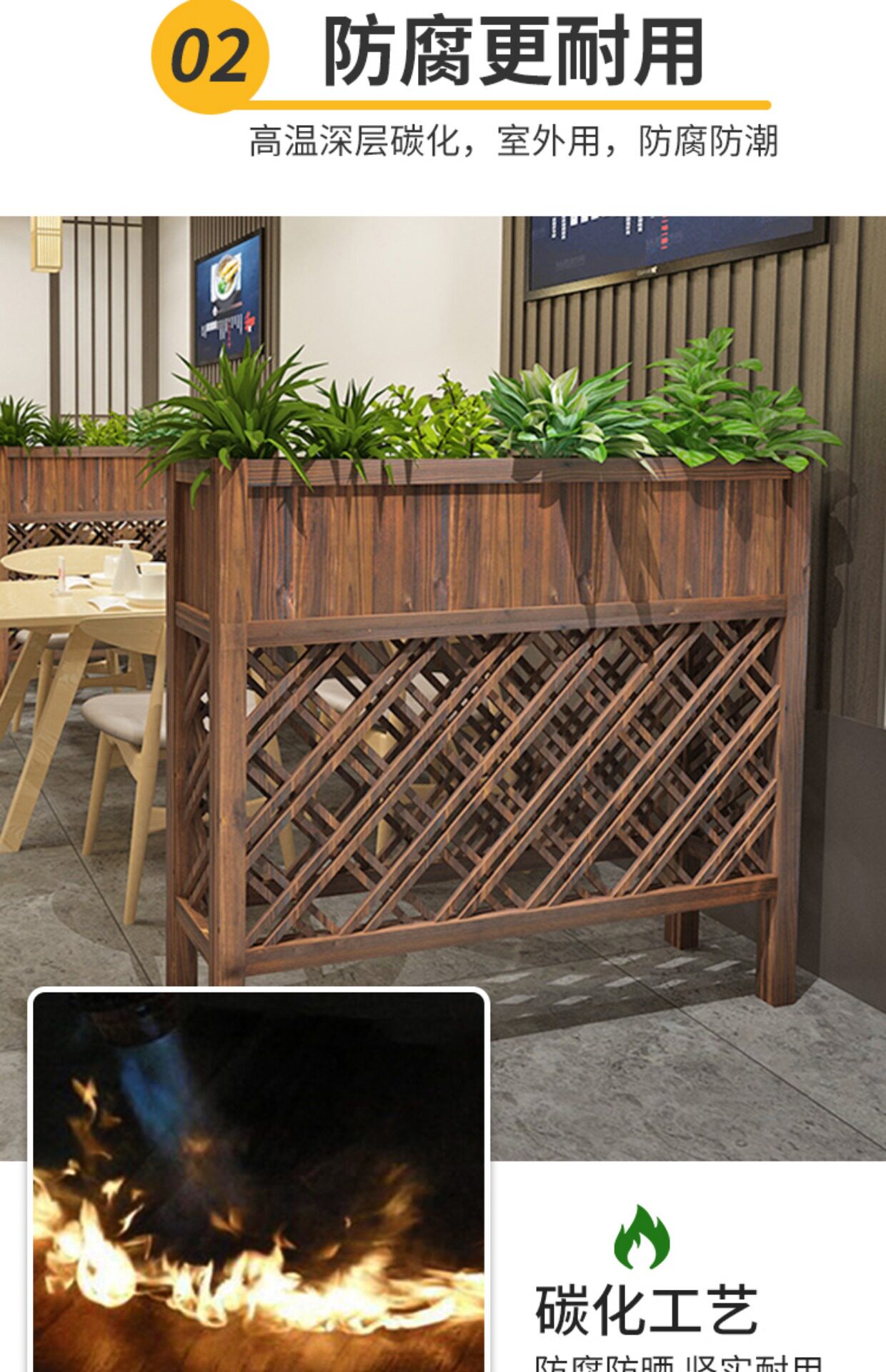 Антикоррозивный деревянный ресторан перегородка цветочные стойки хранение на полке забор для забор сетка коробка забор для забор сетки на открытом воздухе цветочный котла
