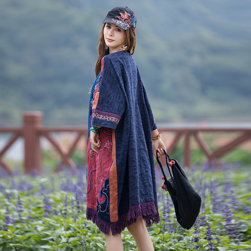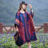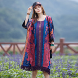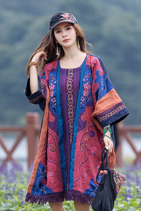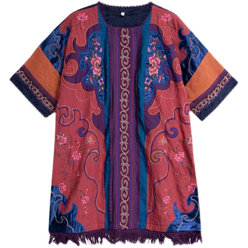Этническое платье с круглым воротником, коллекция 2023, городской стиль, с вышивкой, оверсайз, крой