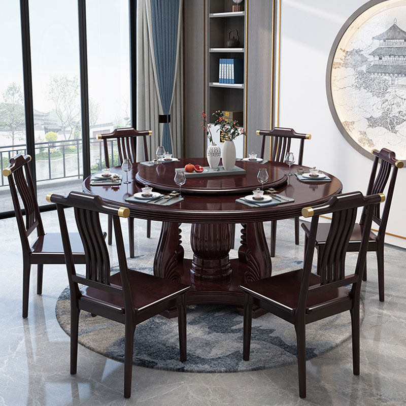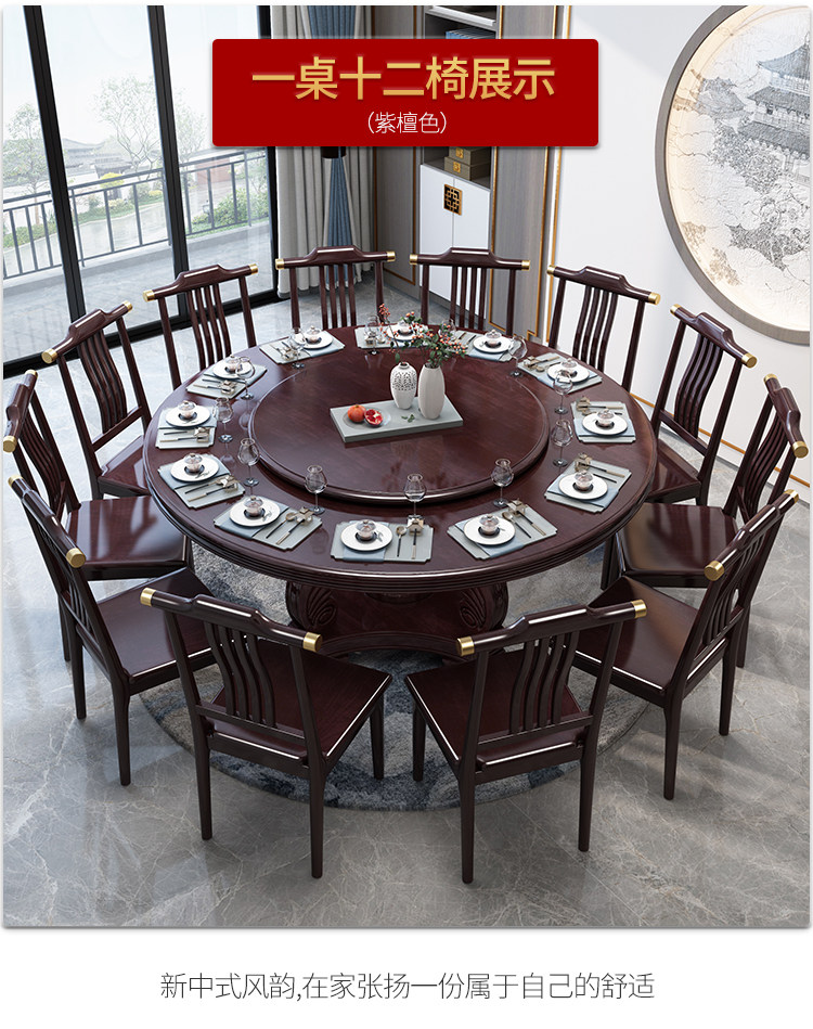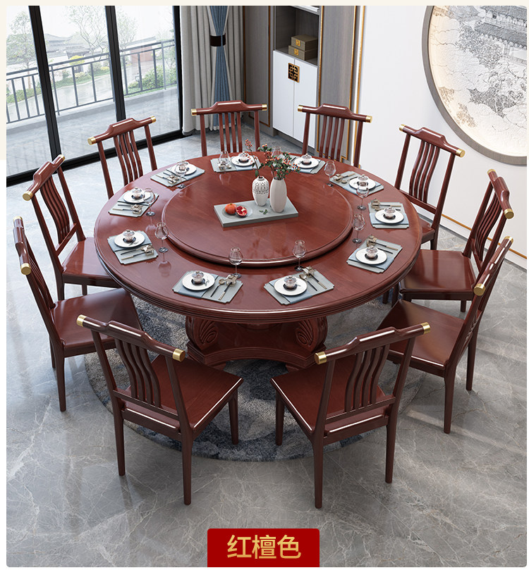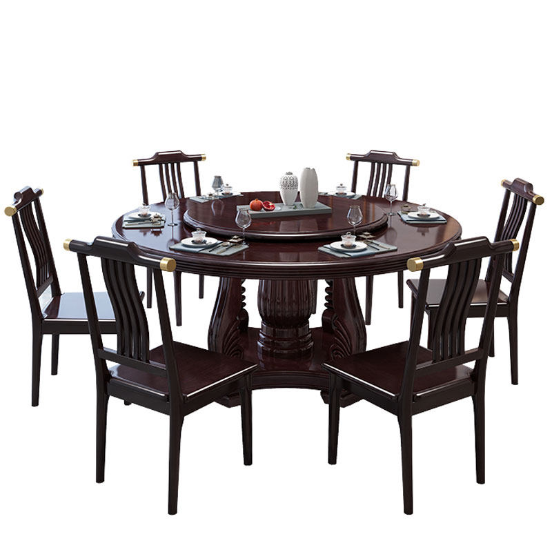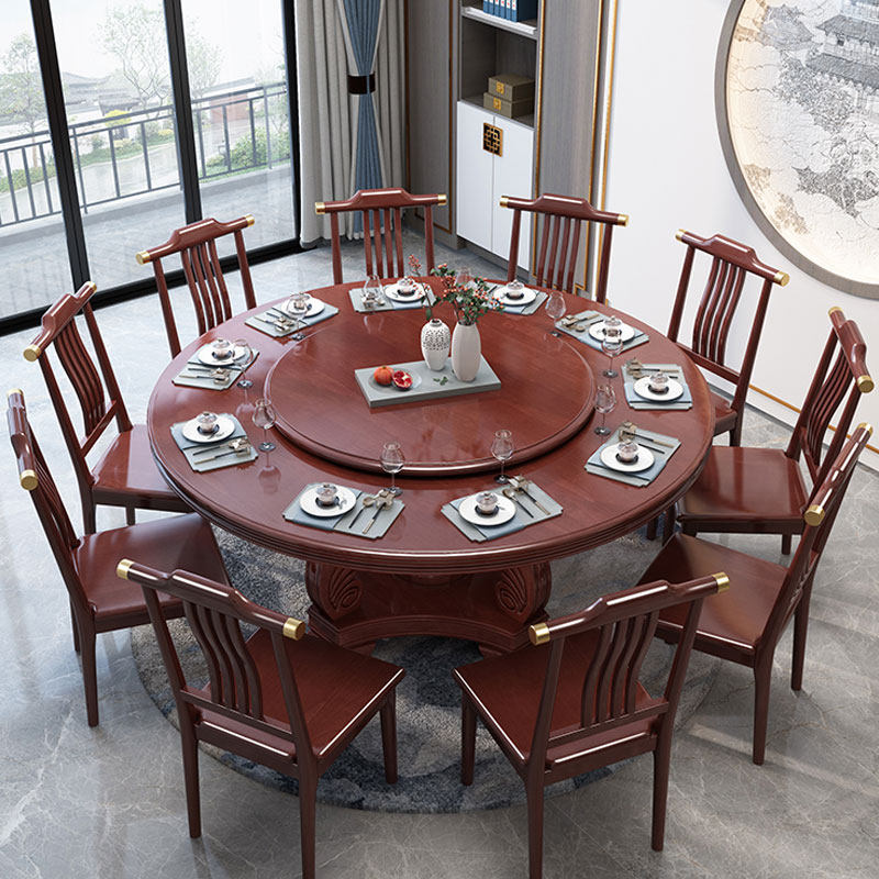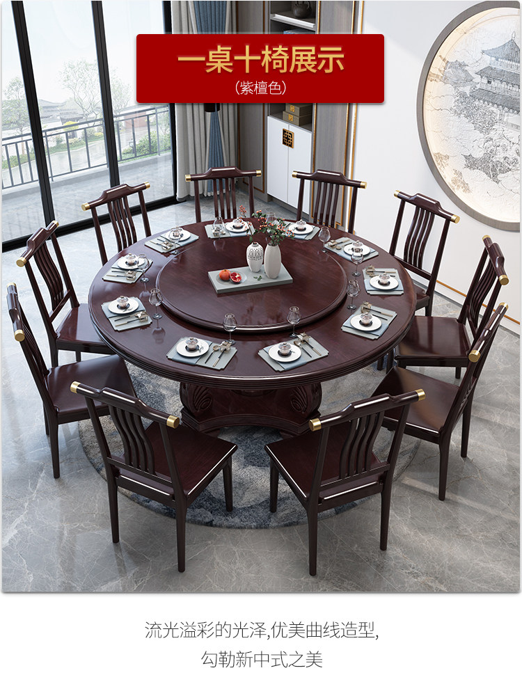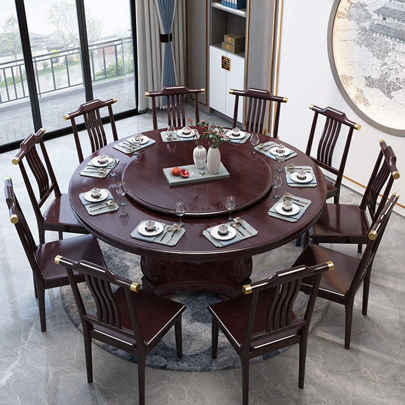 Новый китайский сплошной древесина круглый обеденный стол и сочетание стула. Дом дома с поворотным столом 10 человек едят столовый гостиничный круглый круглый круглый стол