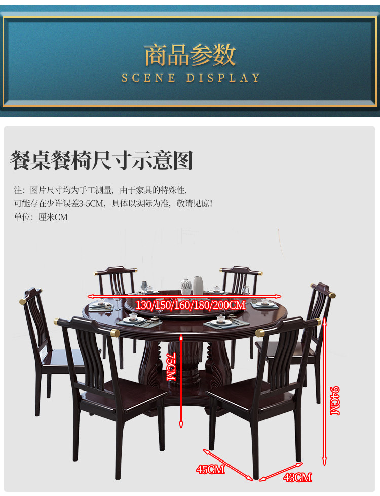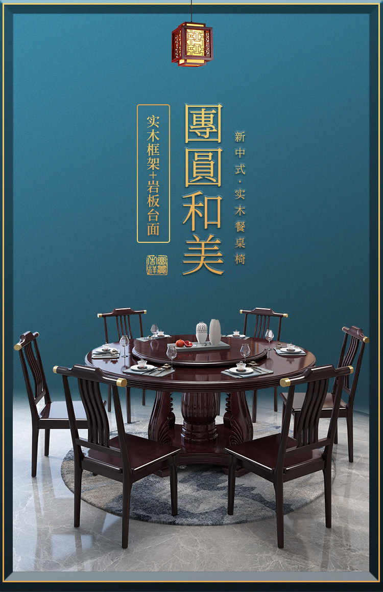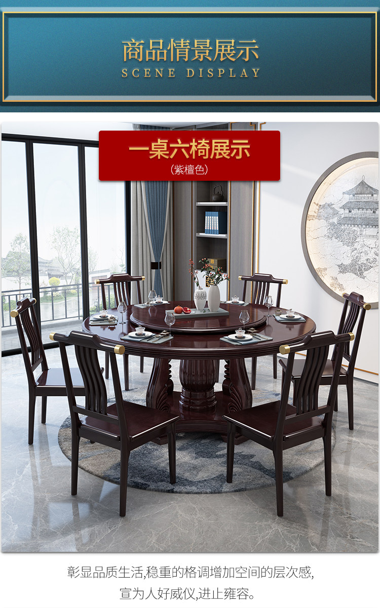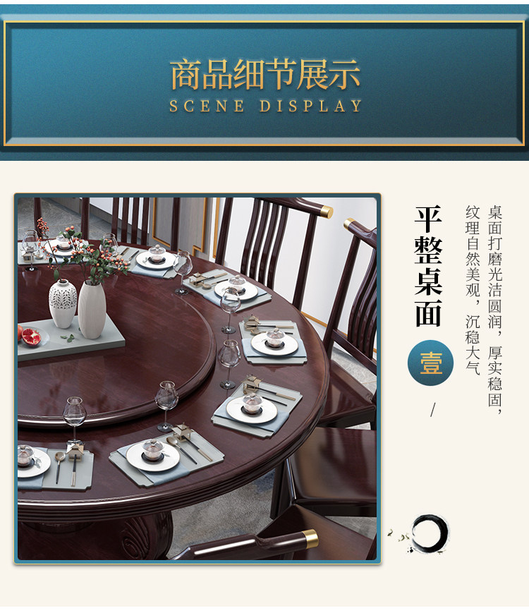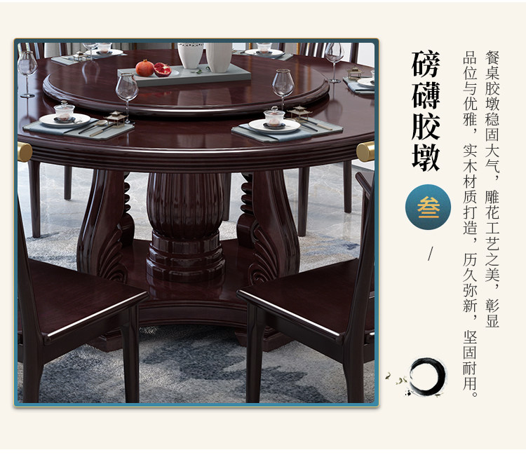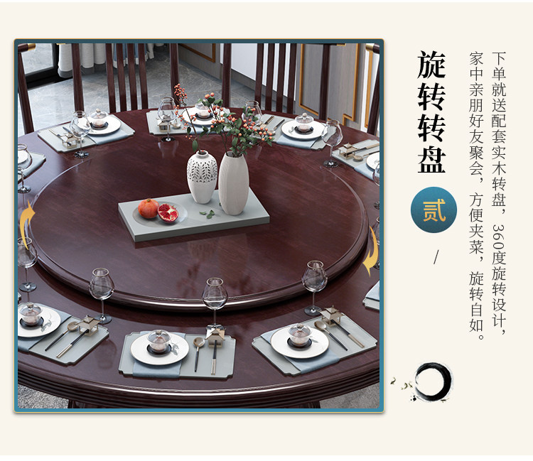 Новый китайский сплошной древесина круглый обеденный стол и сочетание стула. Дом дома с поворотным столом 10 человек едят столовый гостиничный круглый круглый круглый стол