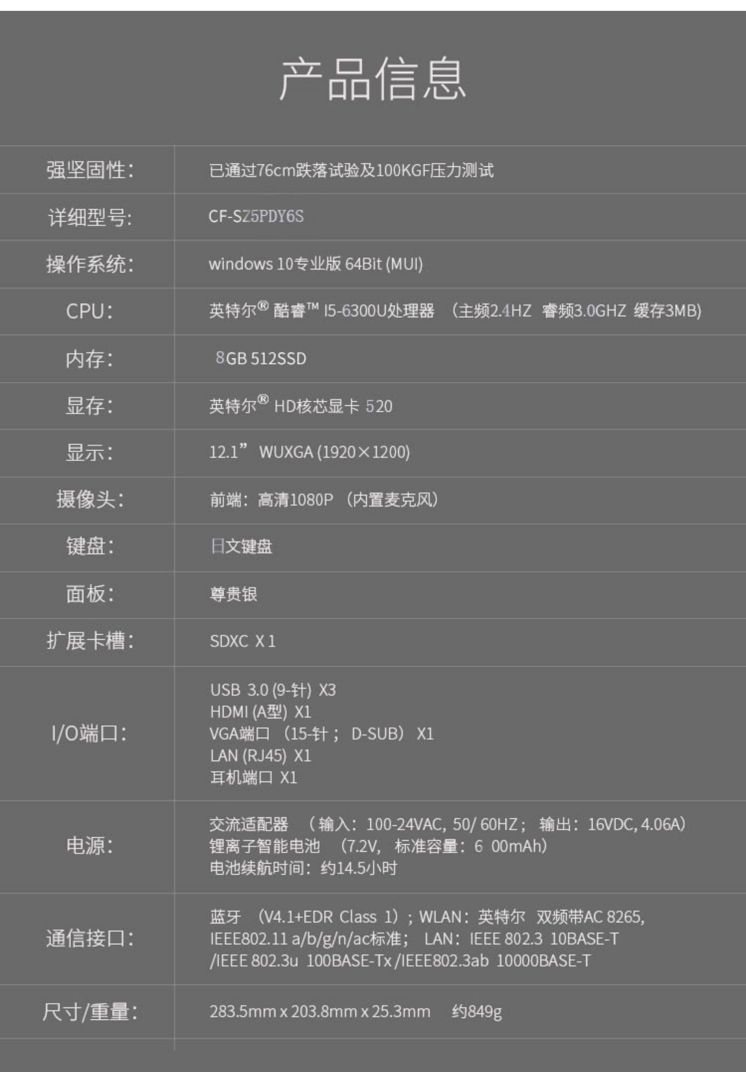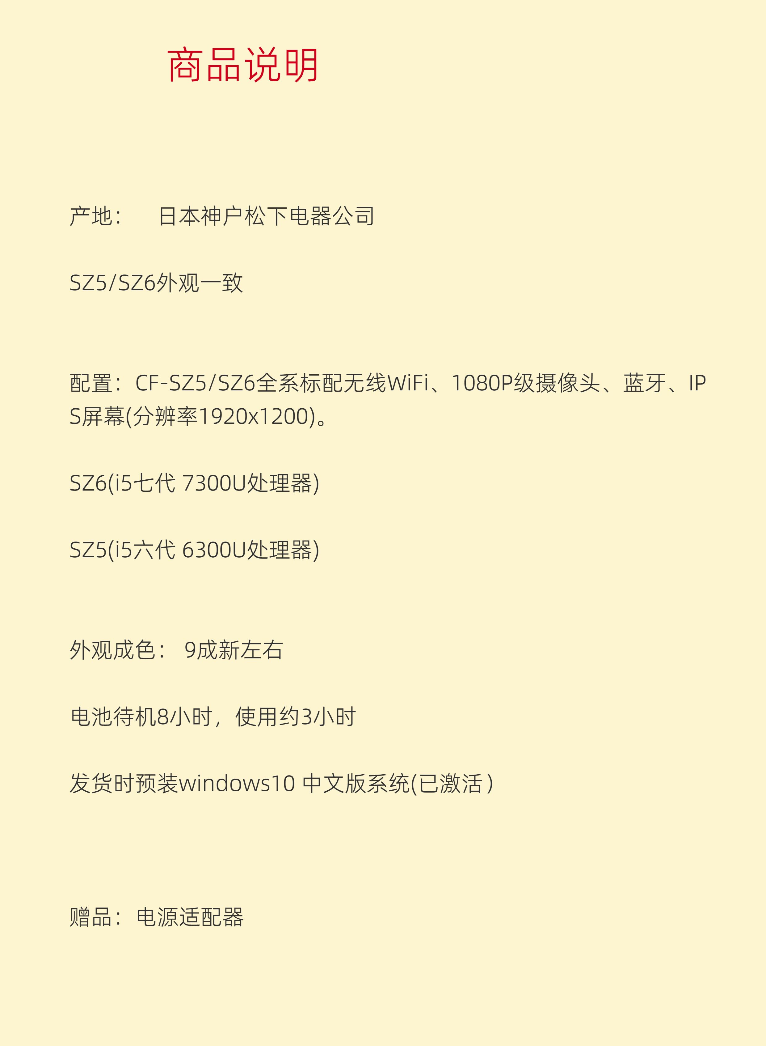 Panasonic/松下 Business Solid CF-SZ6SZ5 Notebook Computer Auto Repair Opform