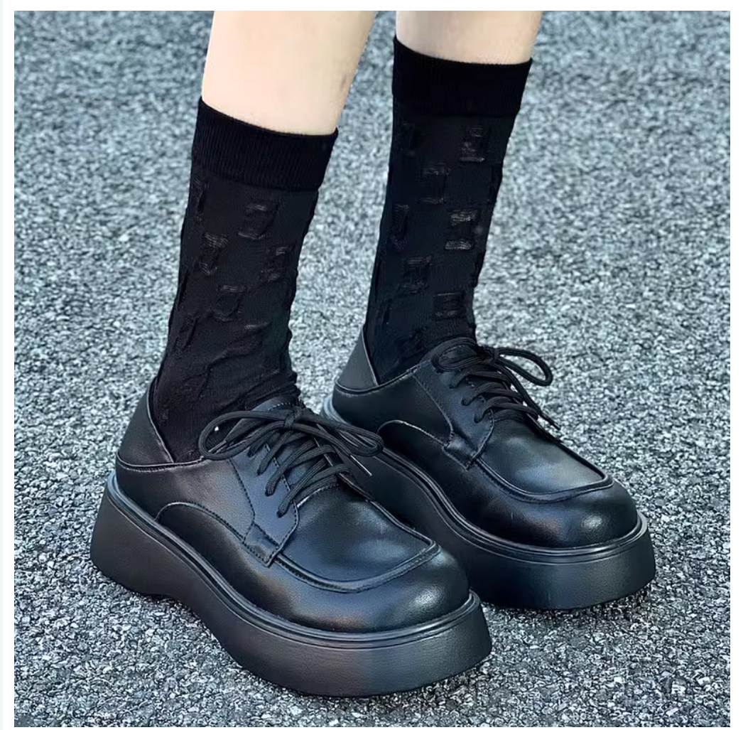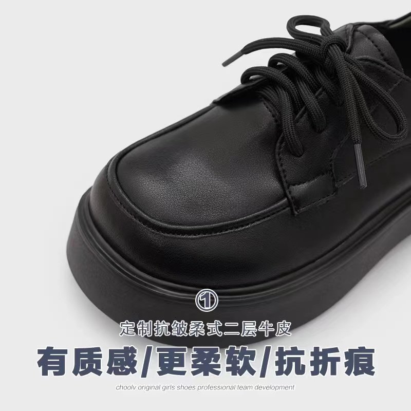 初履 Весенняя обувь на платформе для кожаной обуви в английском стиле, из хлопка и льна