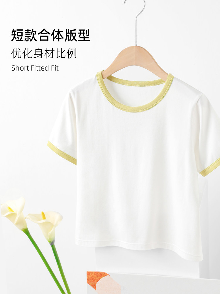 Хлопковая летняя белая короткая футболка с коротким рукавом, облегающий крой, подходит для подростков