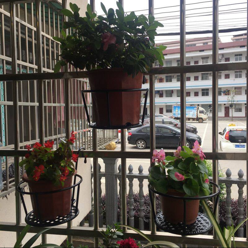 Жирный железный балкон цветочный рамка ограждения железнодорожные железнодорожные железнодорожные рельсы висят Полинуты зеленые окна бонсай бонсай стоя