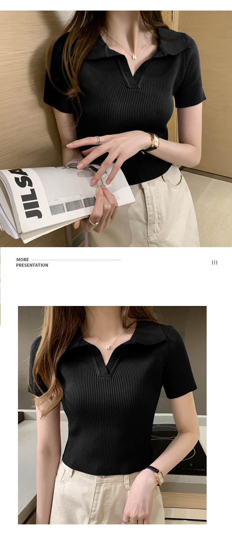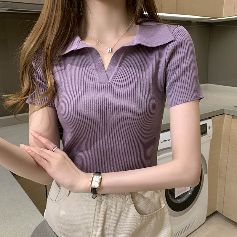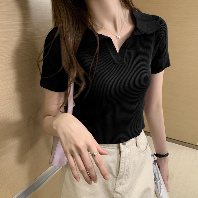 Tide, ретро трикотажная шелковая летняя тонкая футболка polo, коллекция 2023, в американском стиле