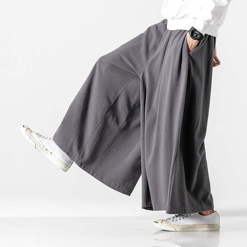 Весеннее ханьфу, ретро юбка, штаны, трендовые штаны-клёш, свободный крой, большой размер, из хлопка и льна