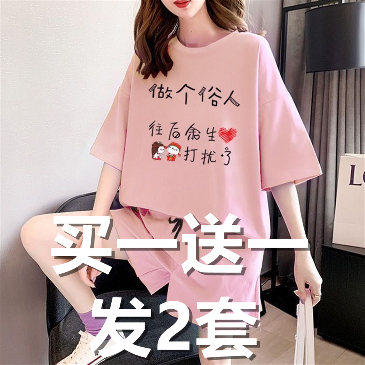 Тонкий модный спортивный костюм, комплект, большой размер, в западном стиле, по фигуре, короткий рукав