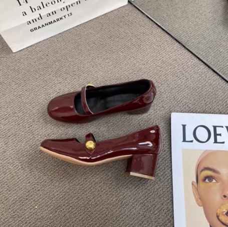 Красная высокая обувь для кожаной обуви, модель весна/осень 2024 года, французский стиль