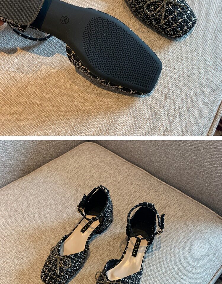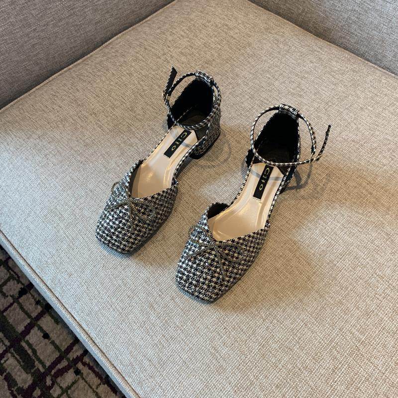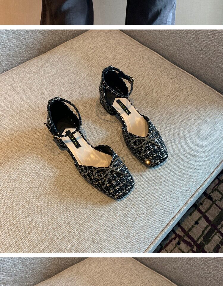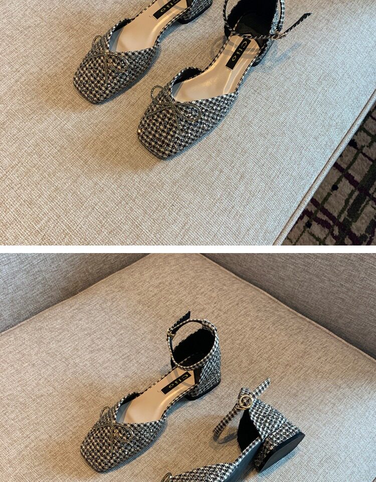 Розетки французские одиночные туфли Женские народные ретро -птицы Горячие сверла различные слова с низкими каблуками
