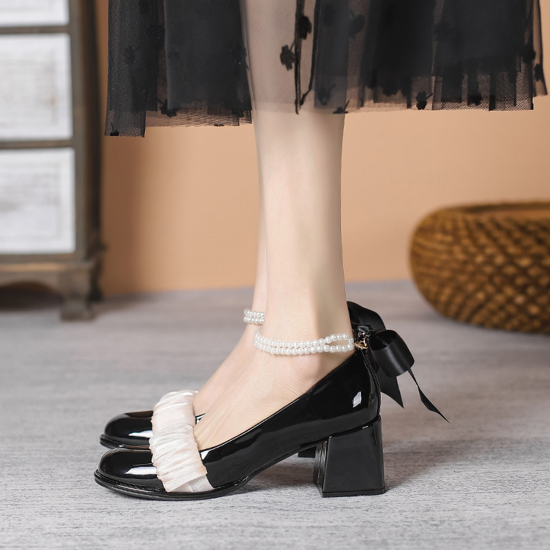 Туфли на высоком каблуке с низким вырезом с бантиком, коллекция 2022, французский стиль