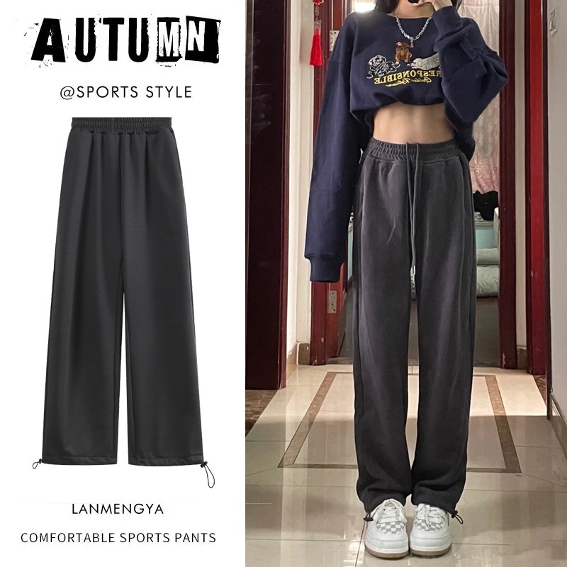Осенние штаны, большой размер, свободный крой, на шнурках