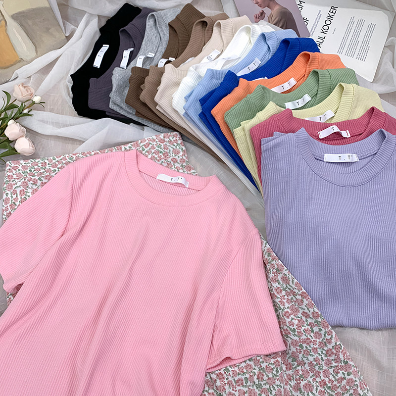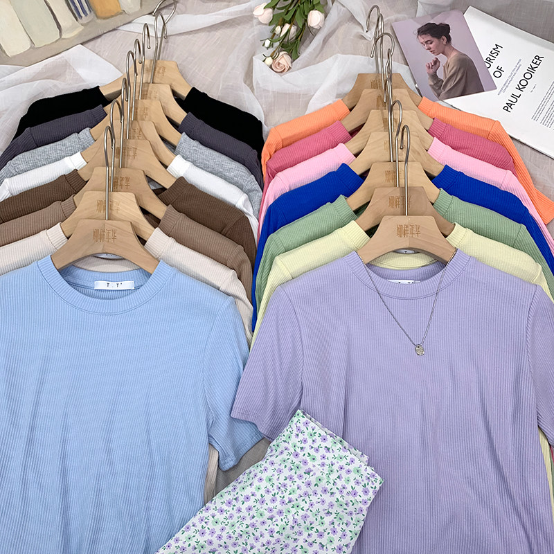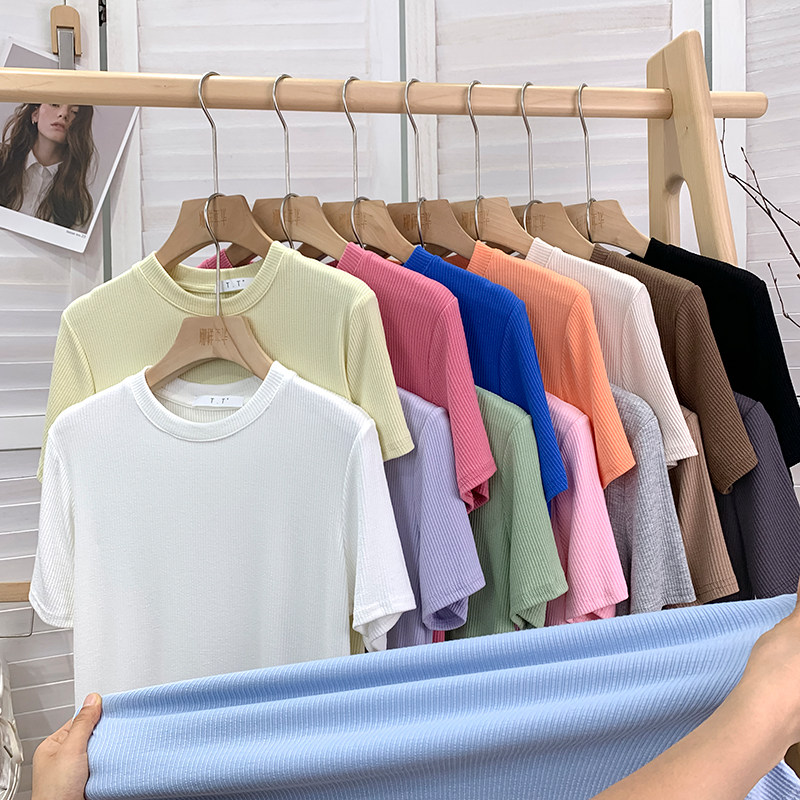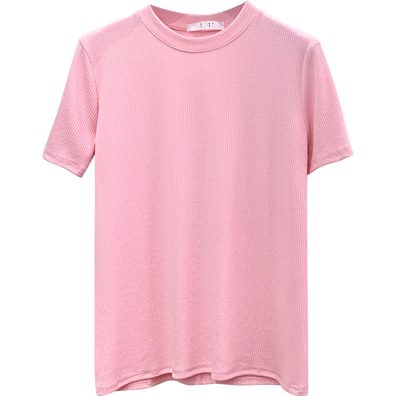 Хлопковая весенняя летняя приятная телу футболка с коротким рукавом, в обтяжку