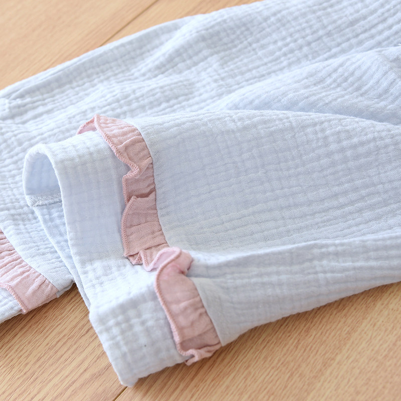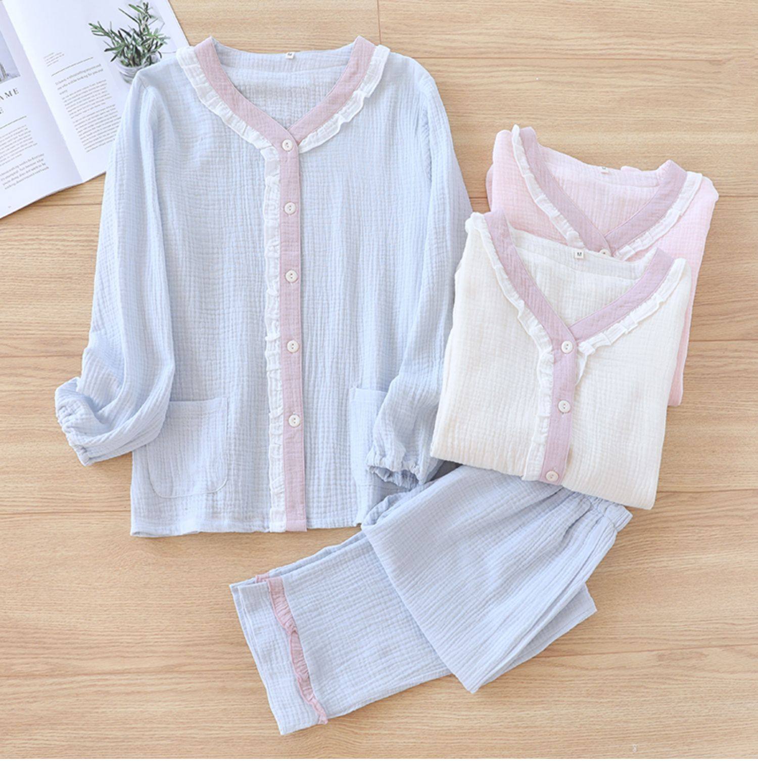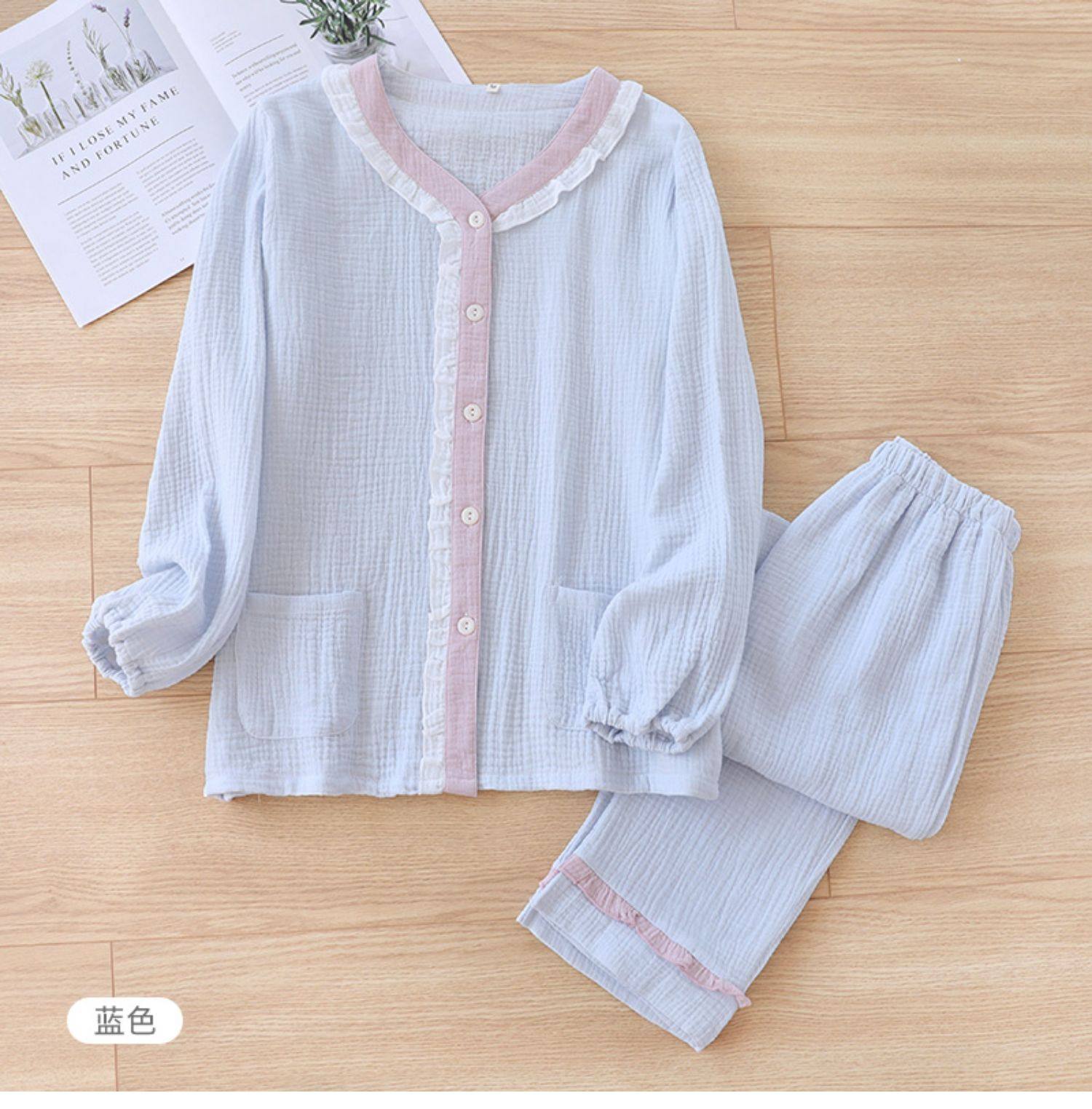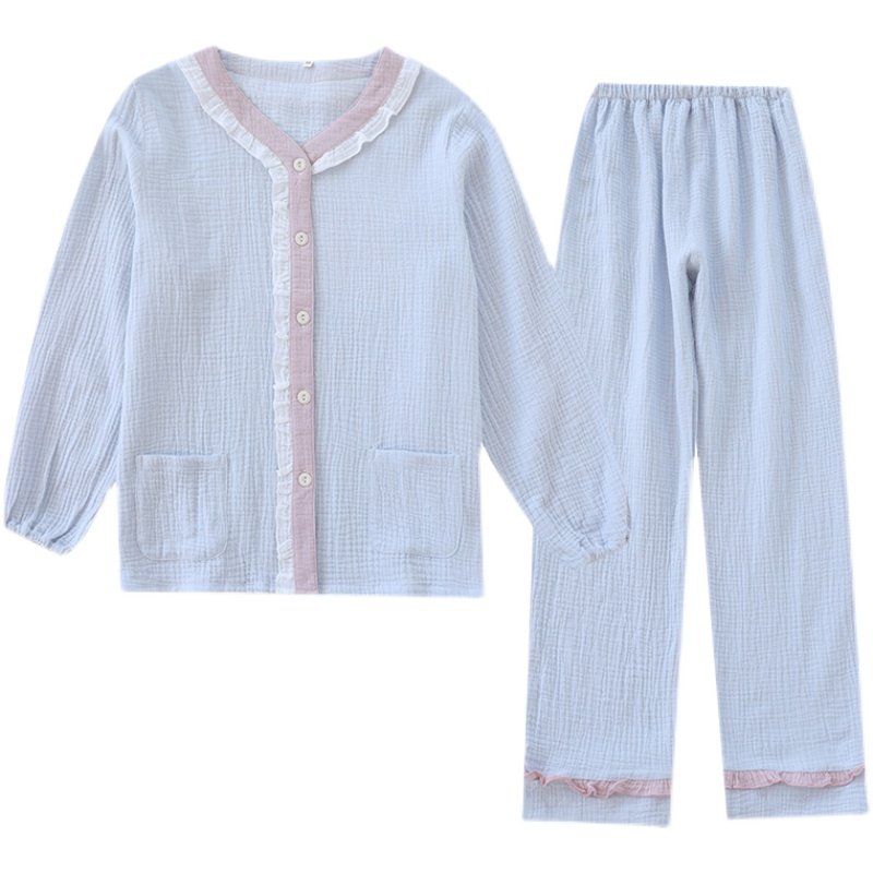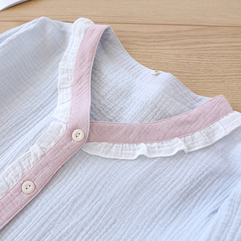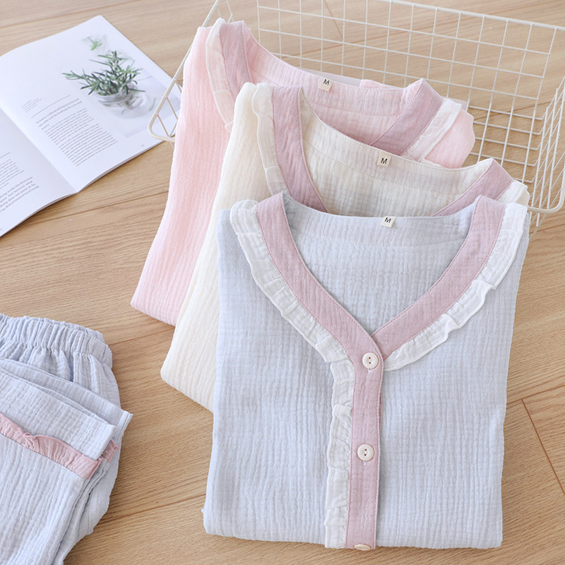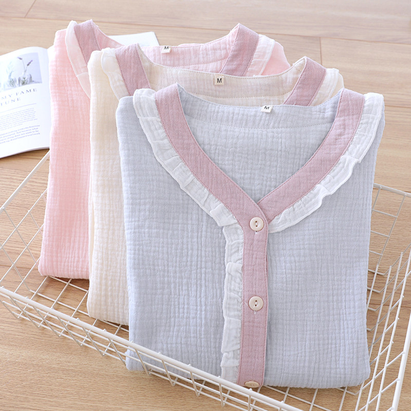 Японская милая осенняя пижама, хлопковый марлевый тонкий лонгслив, комплект, V-образный вырез