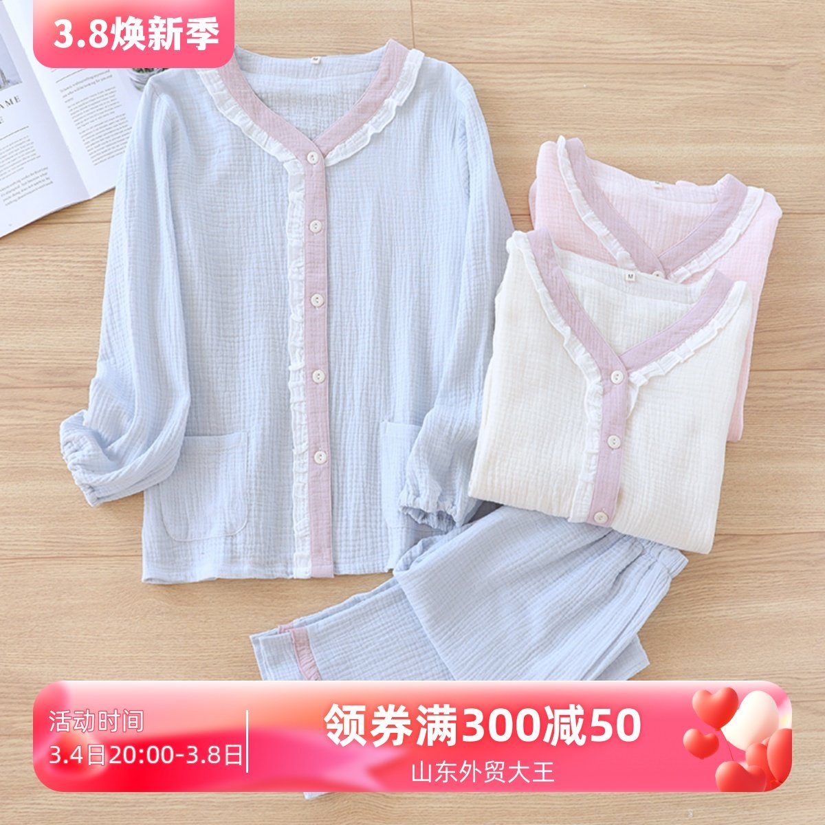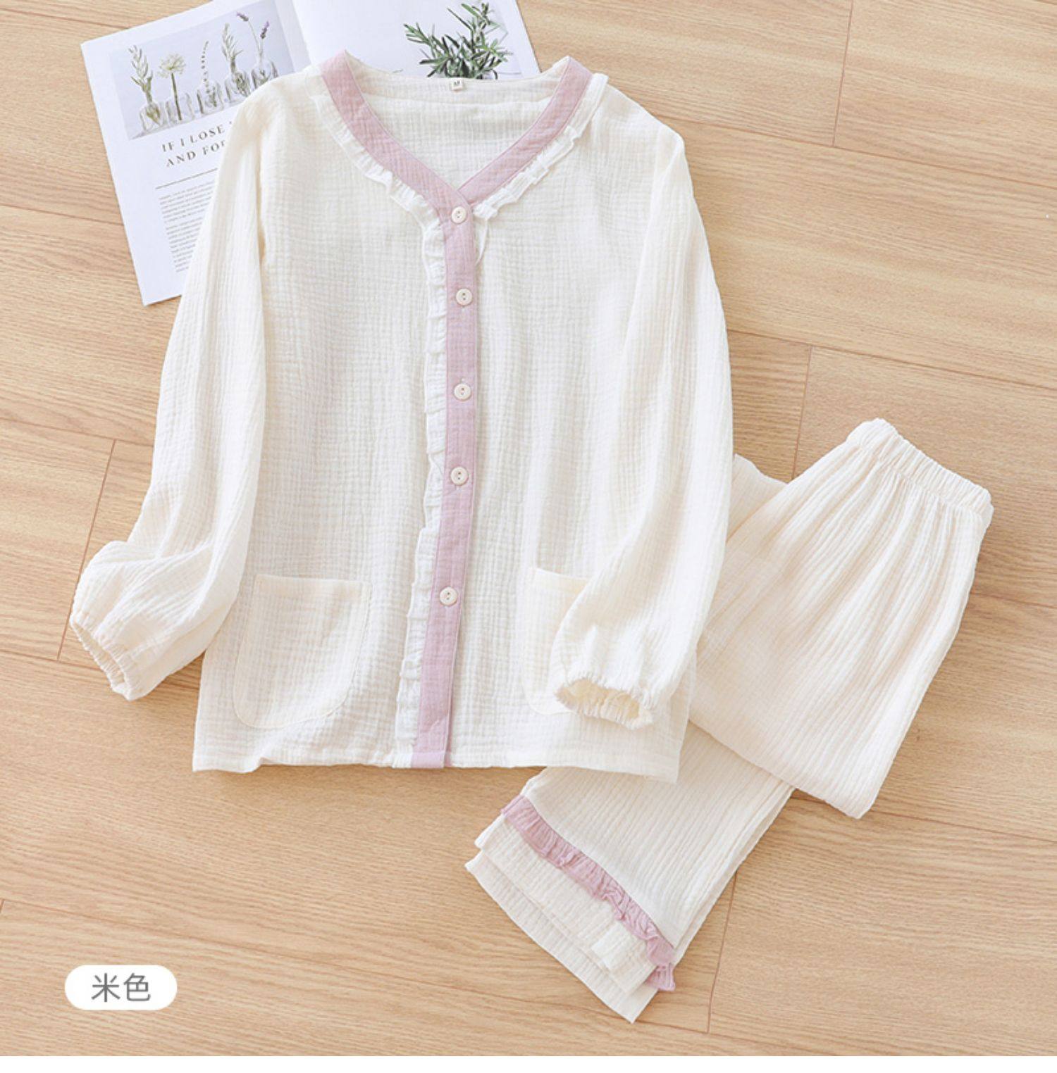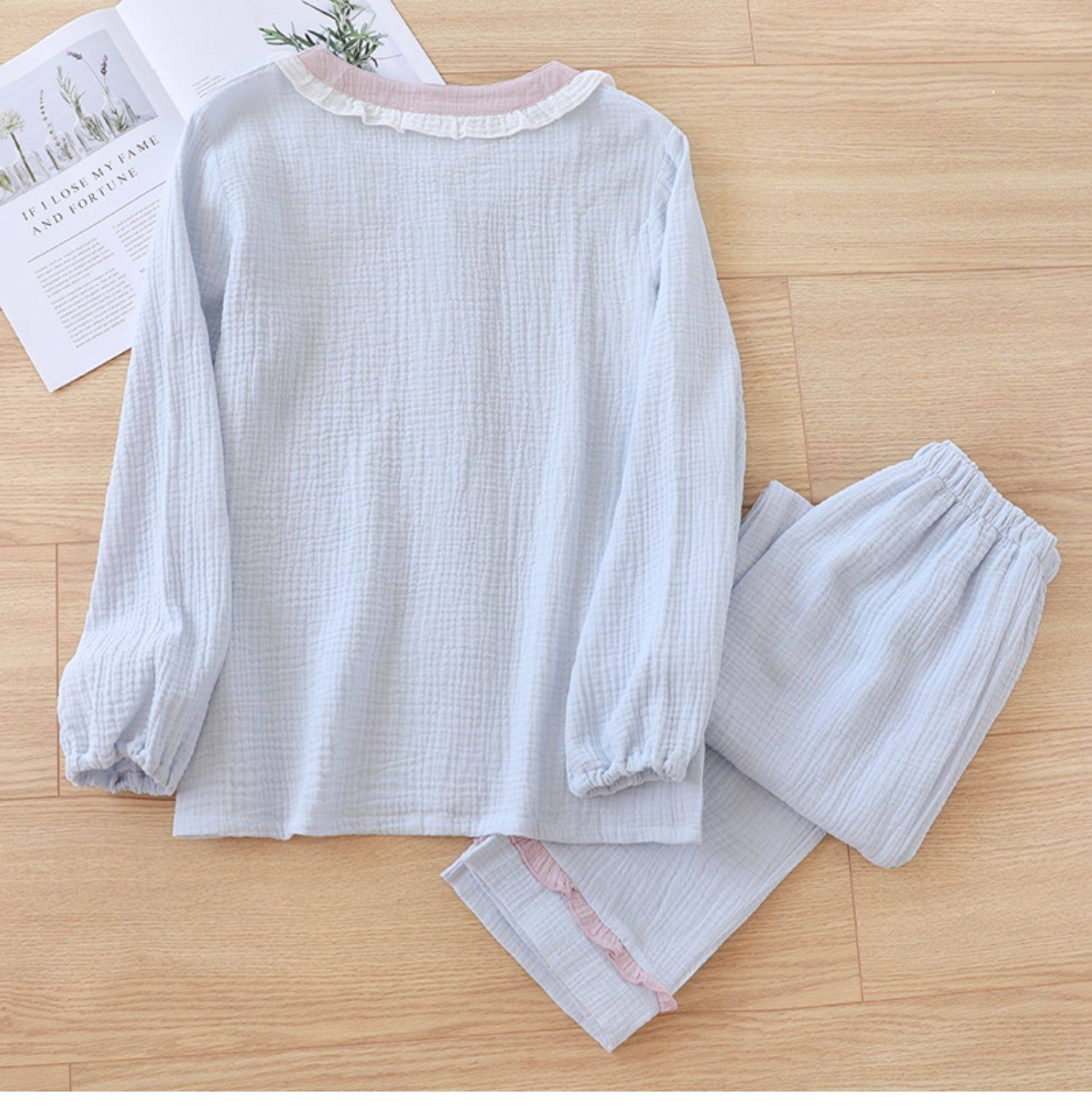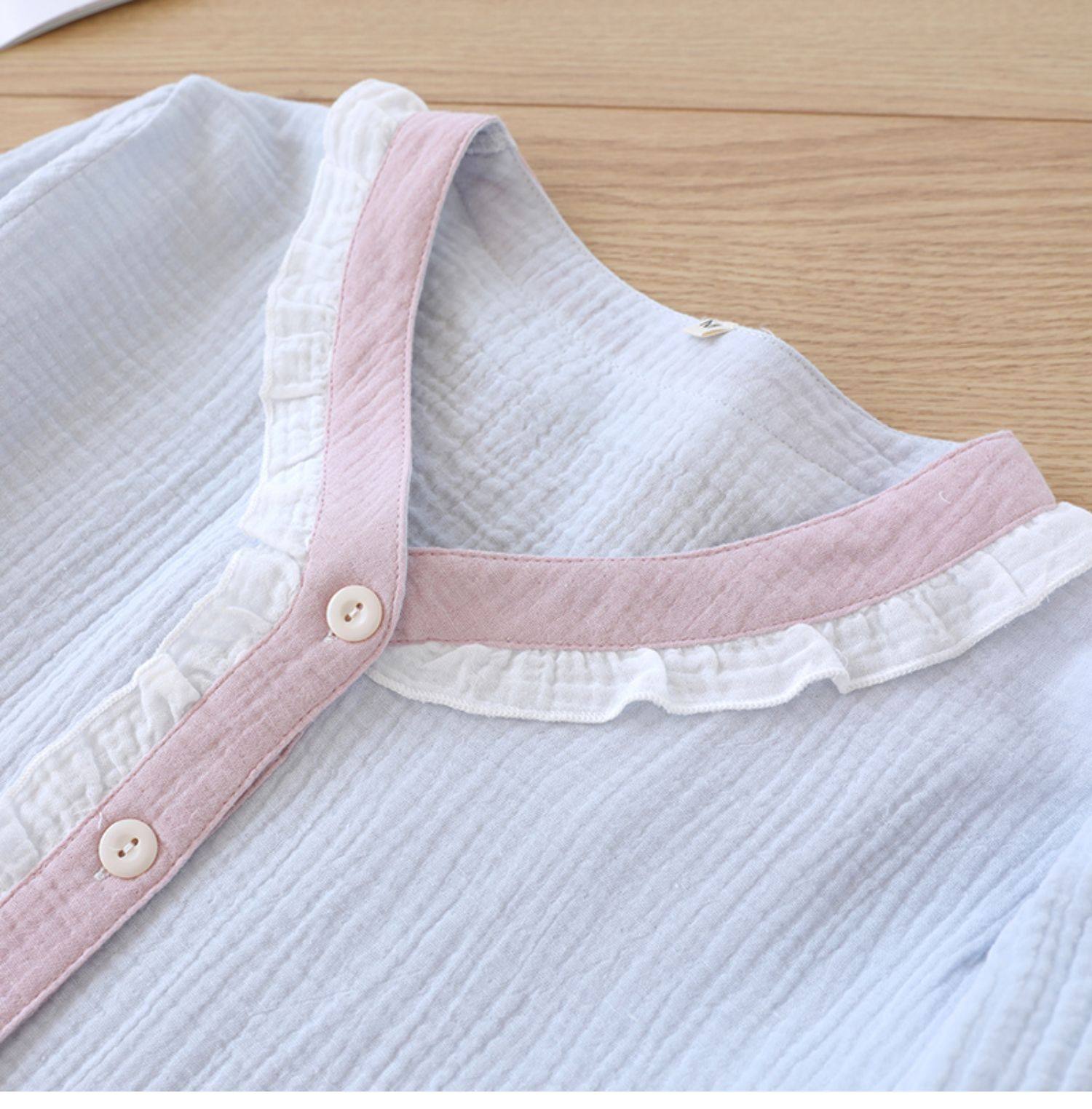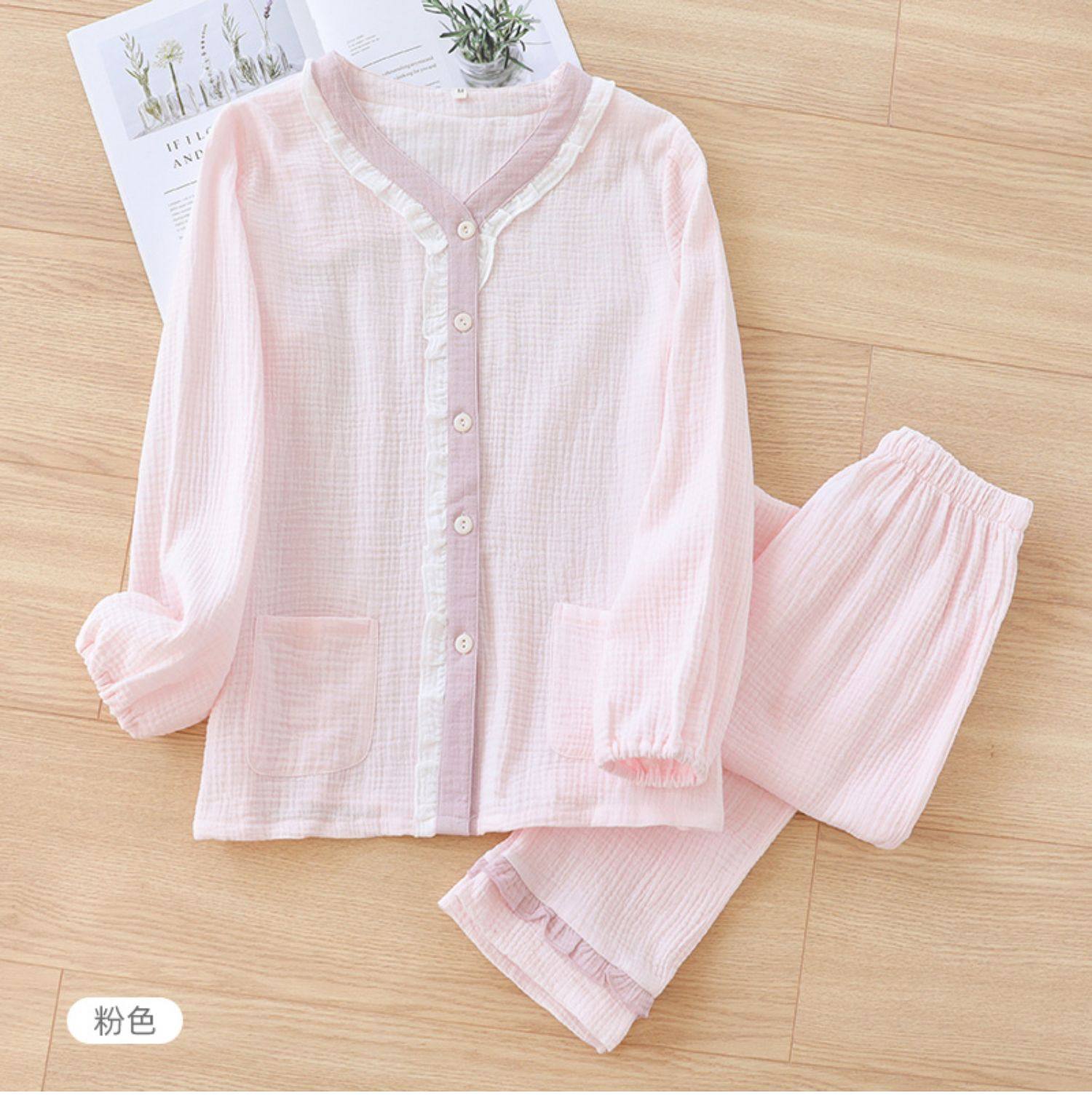 Японская милая осенняя пижама, хлопковый марлевый тонкий лонгслив, комплект, V-образный вырез