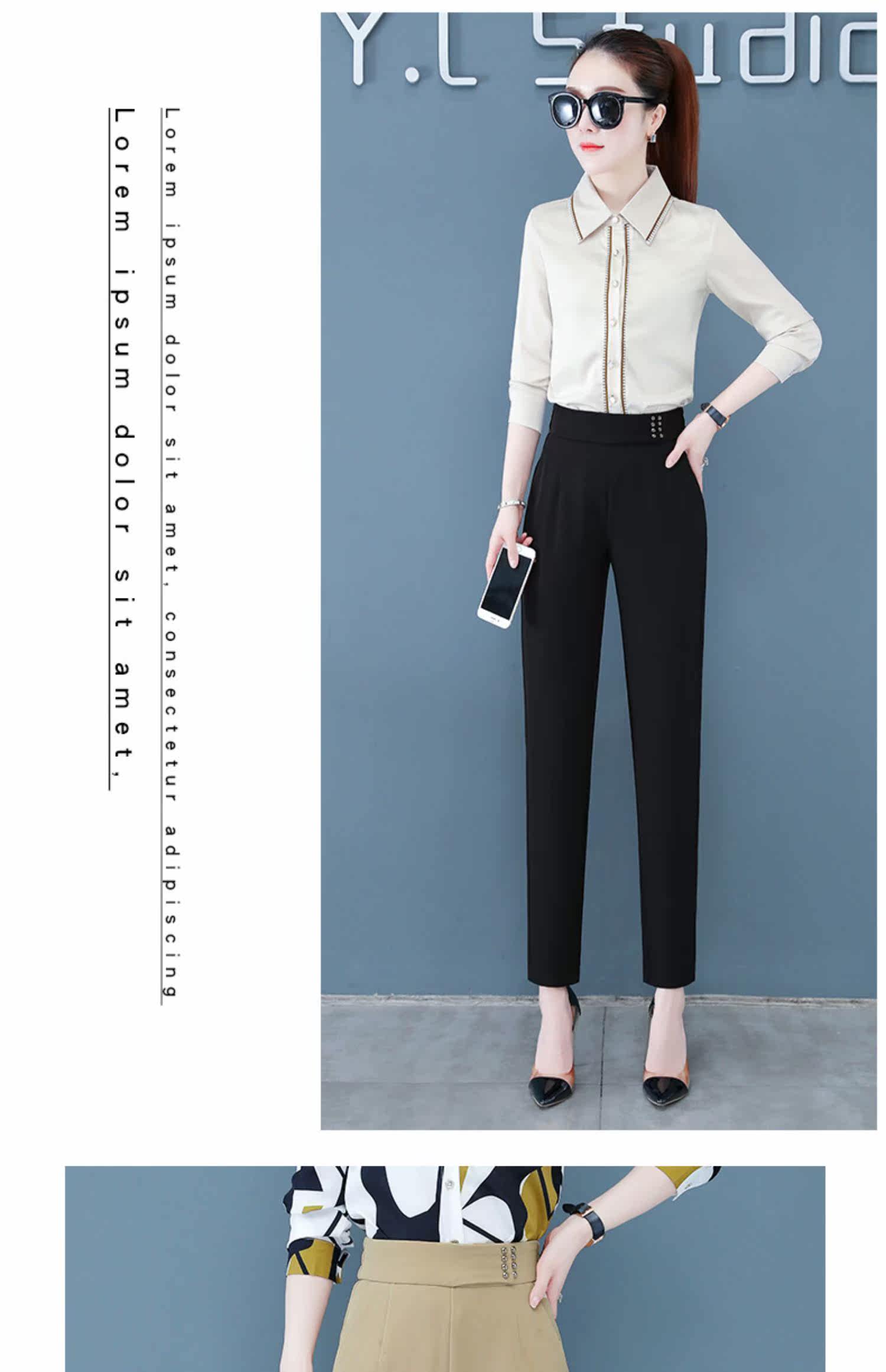 Костюм, осенние штаны, высокая талия, подходит для подростков, свободный прямой крой