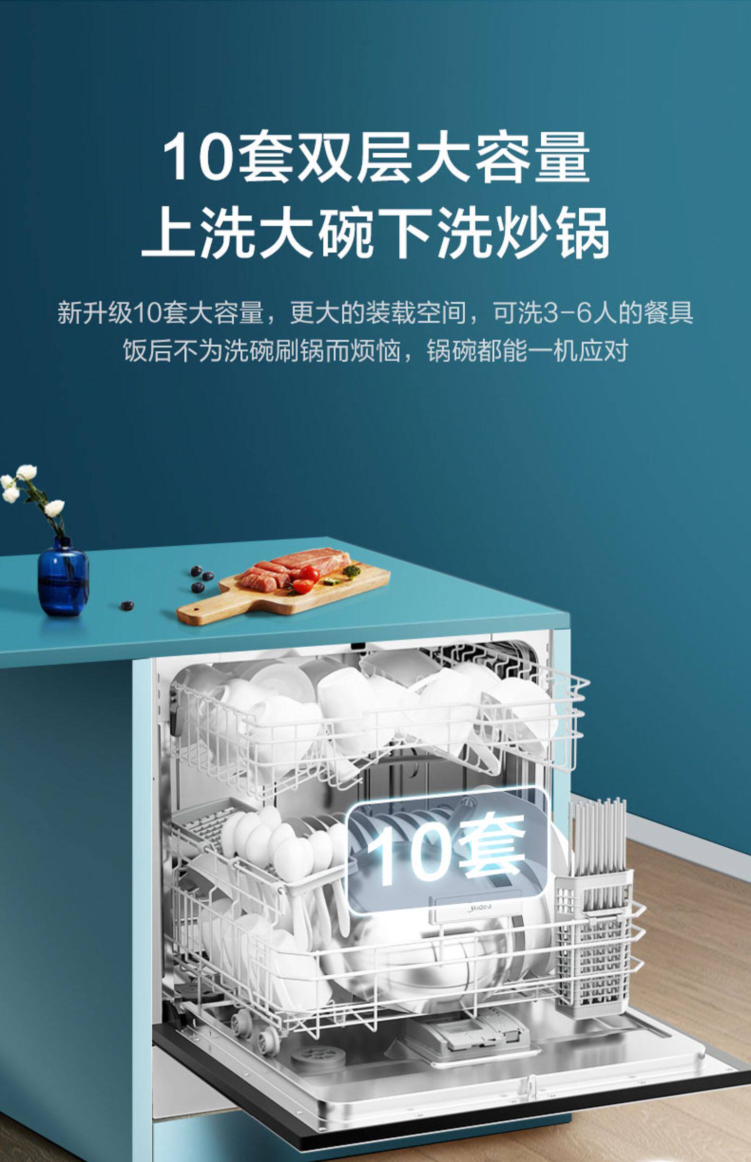 Мидиа -посудомоечная машина домашняя рабочая стола встроено 10 наборов автоматической дезинфекционной стерилизации интегрированной малой WX10 Белый