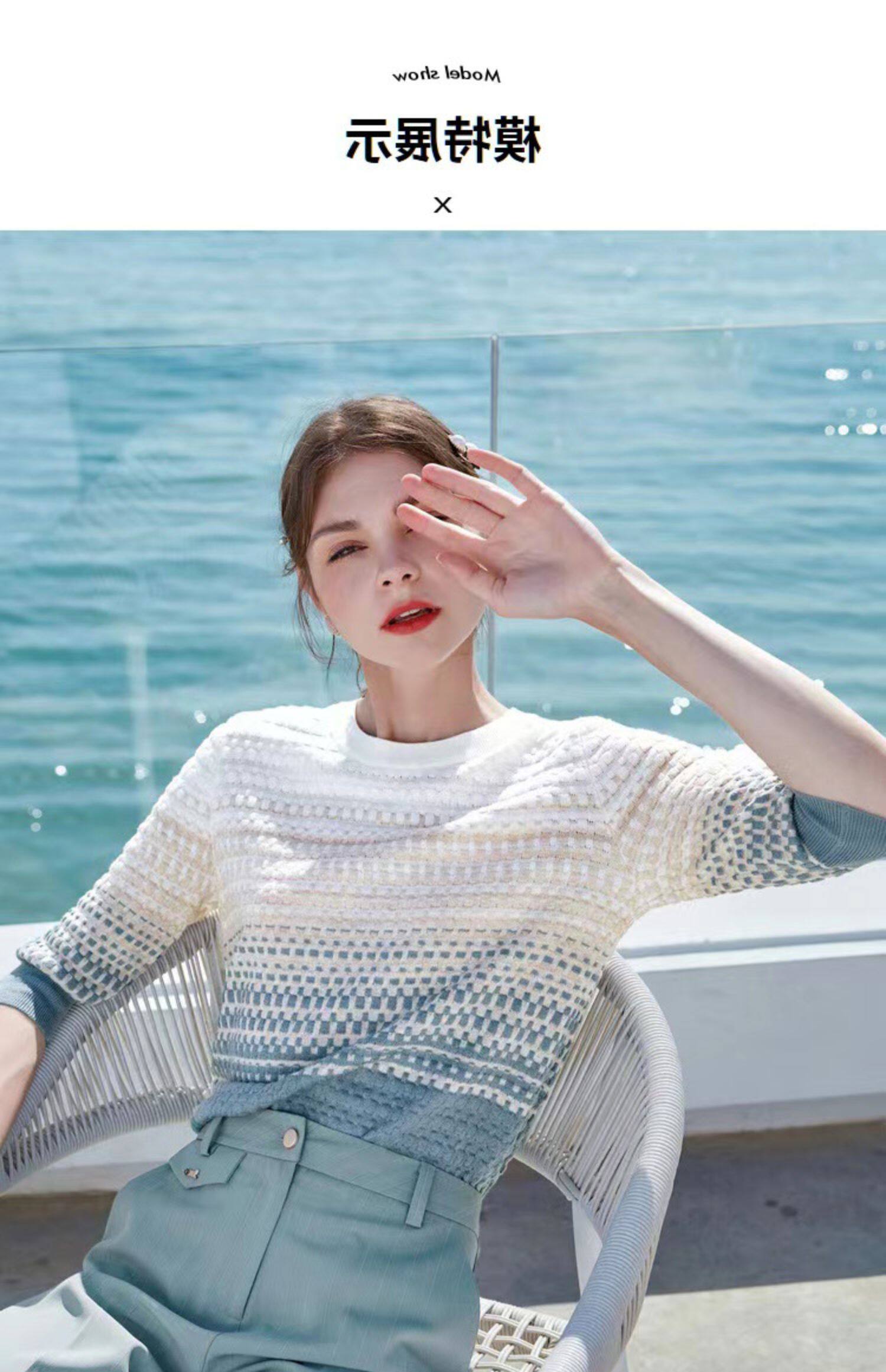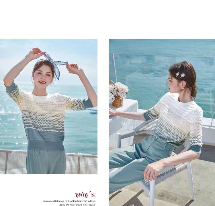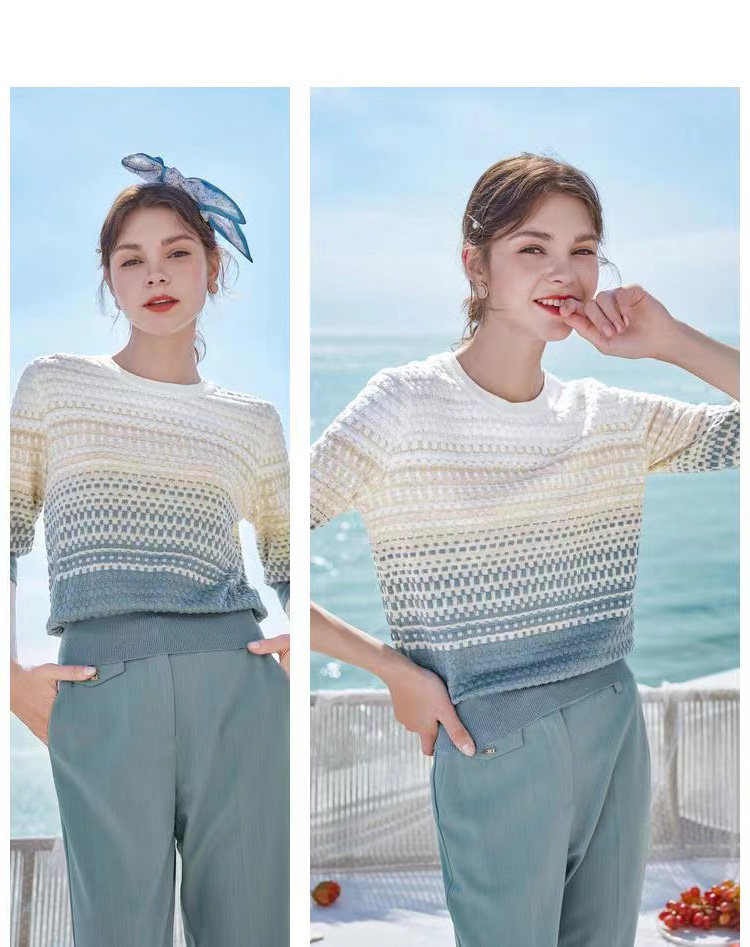 Базовый летний модный приталенный трикотажный свитер, футболка, в западном стиле, градиент