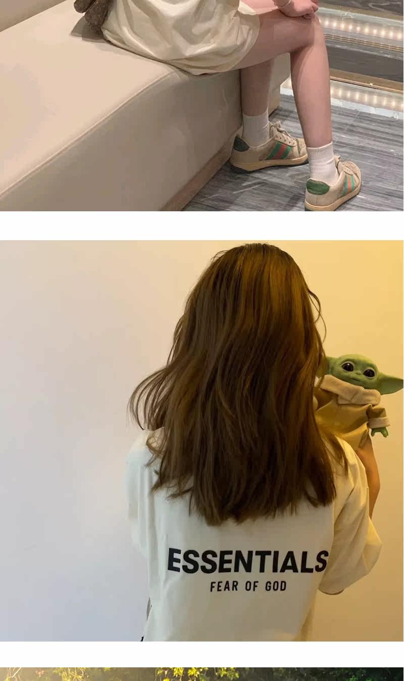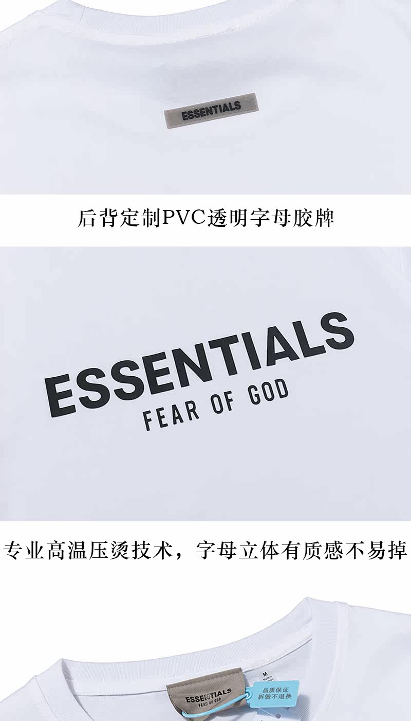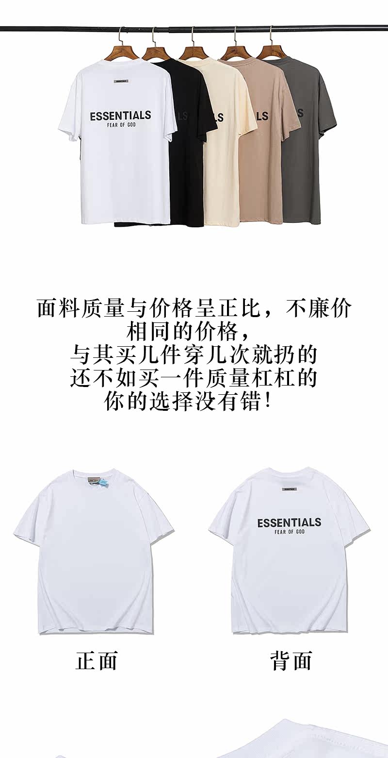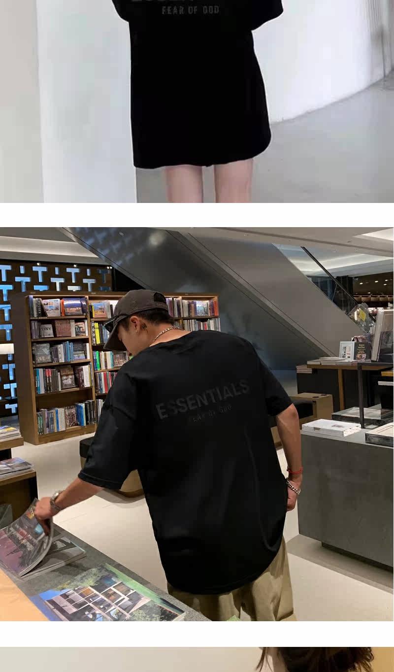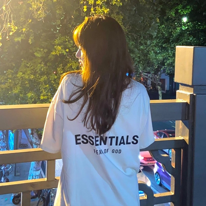 Футболка FEAR OF GOD с двойной линией ESSENTIALS, ламинированная буквами, FOG, уличная футболка с круглым вырезом и короткими рукавами, в паре