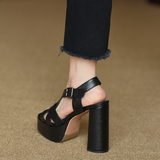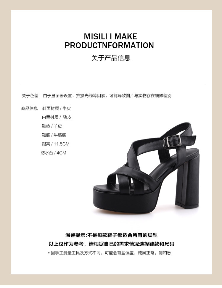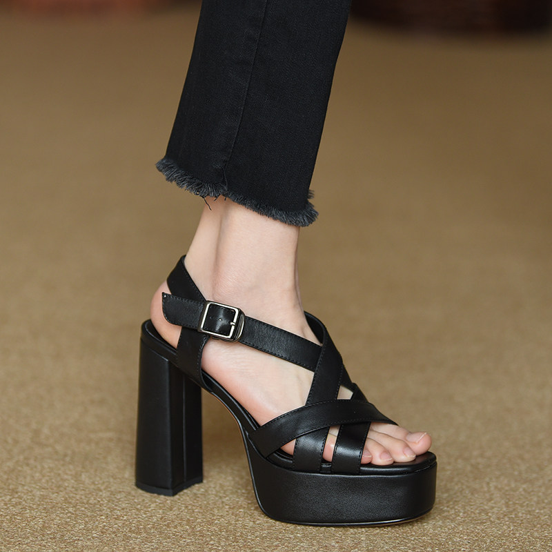 Misili/непромокаемые босоножки на высоком каблуке в римском стиле на толстом каблуке, женские летние новые женские туфли из натуральной кожи с круглым носком 11,5 см