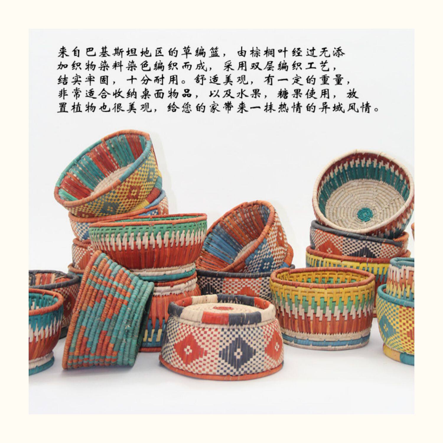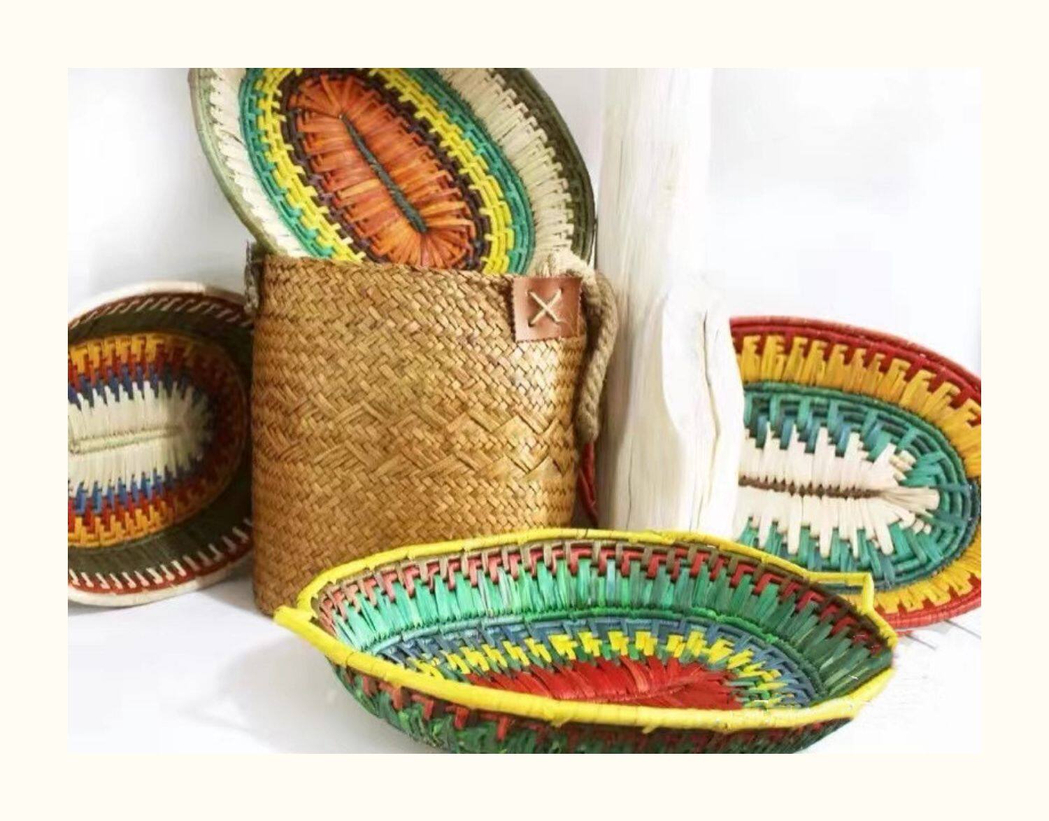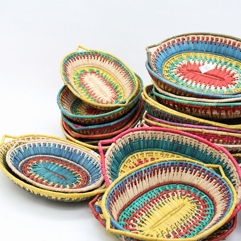 Пакистанская плетеная корзина из натуральной травы, красочная настольная корзина, тарелка с фруктами, ваза с фруктами, корзина с фруктами, журнальный столик, корзина для хранения закусок