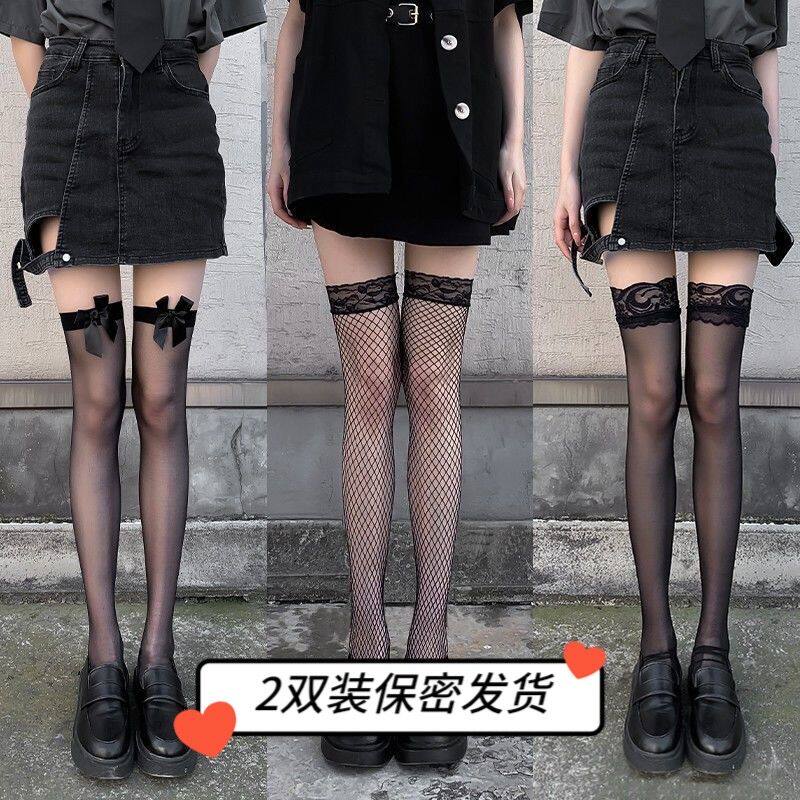 Сексуальные черные колготки с бантиком, гольфы, кружевные носки, ультратонкая рыболовная сеть