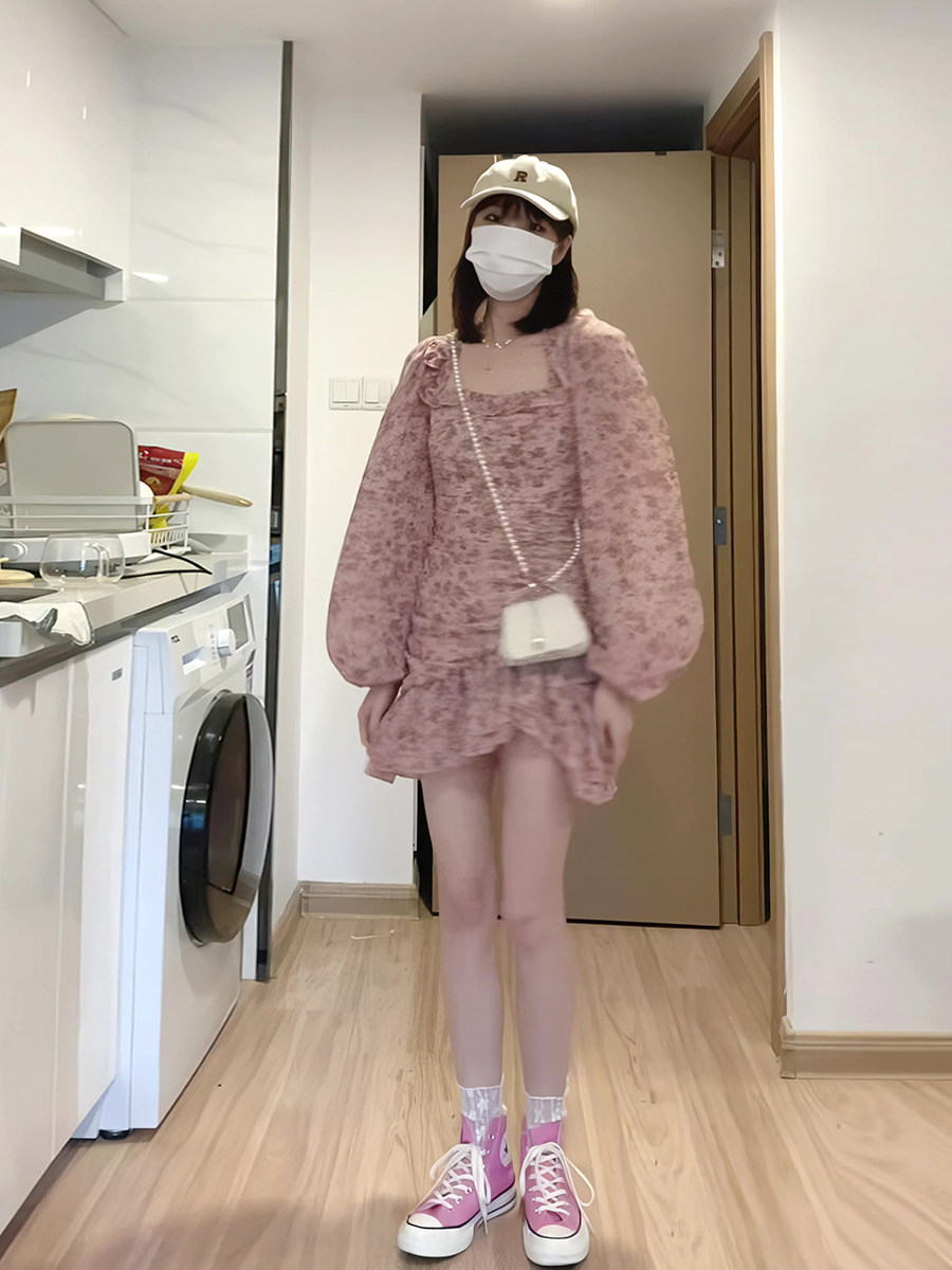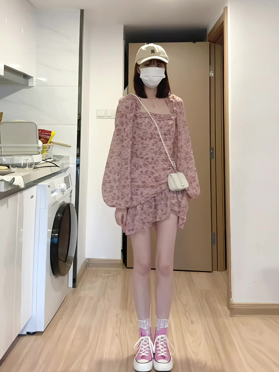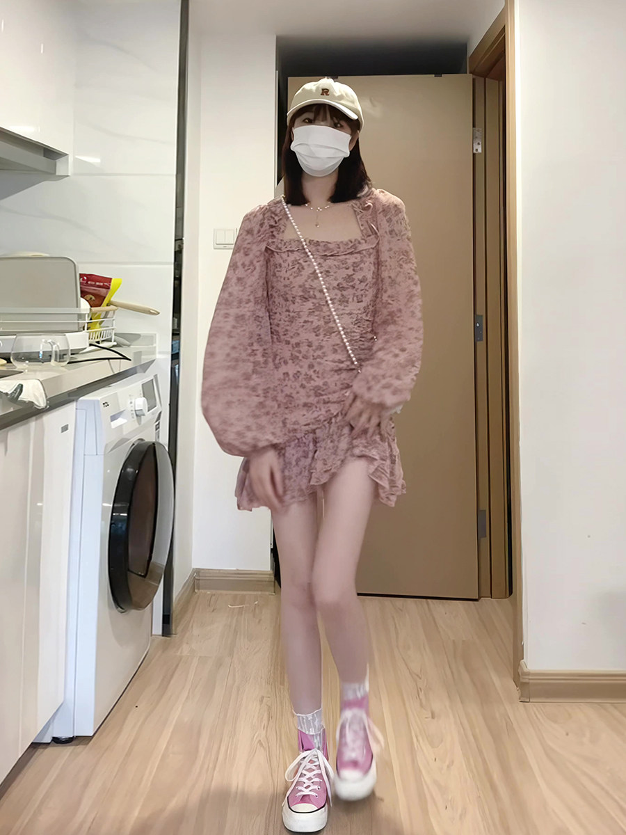 Милая весенняя юбка, осеннее платье, изысканный стиль, квадратный вырез, 2023, французский стиль, в цветочек, подходит для подростков
