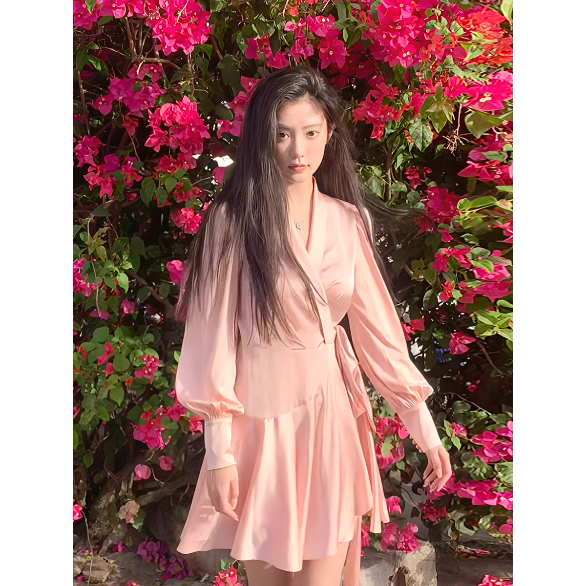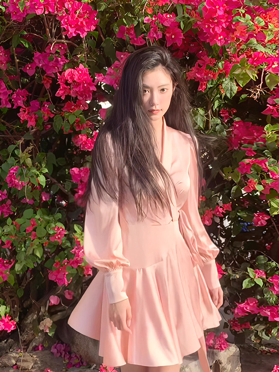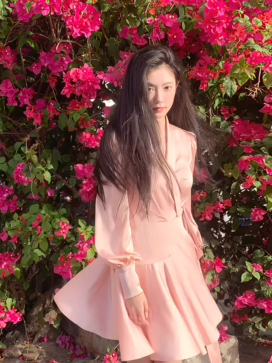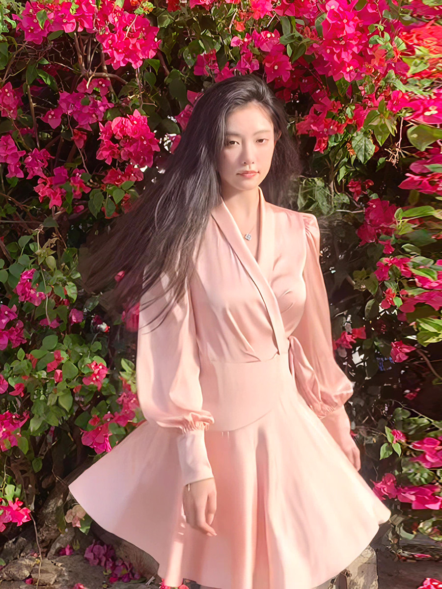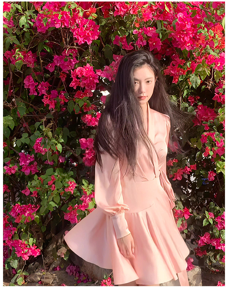 Розовое дизайнерское осеннее платье, юбка, в стиле Шанель, V-образный вырез