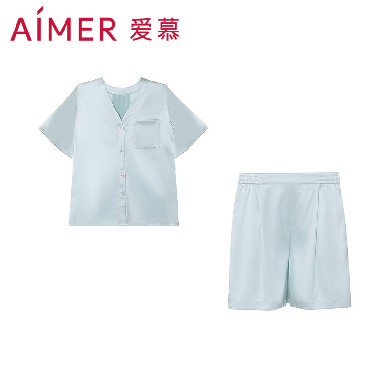Летняя тонкая шелковая пижама, однотонные шорты, комплект, короткий рукав