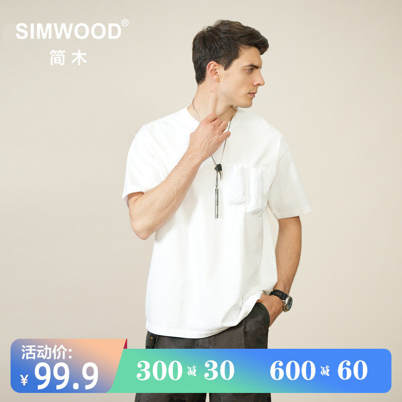 Simwood Jane Wood Men's Men [Loose Edition] Новая 310G Хлопковая хлопчатобумажная грудь Speat Bag Sack Short -sleeed T -For Men Men