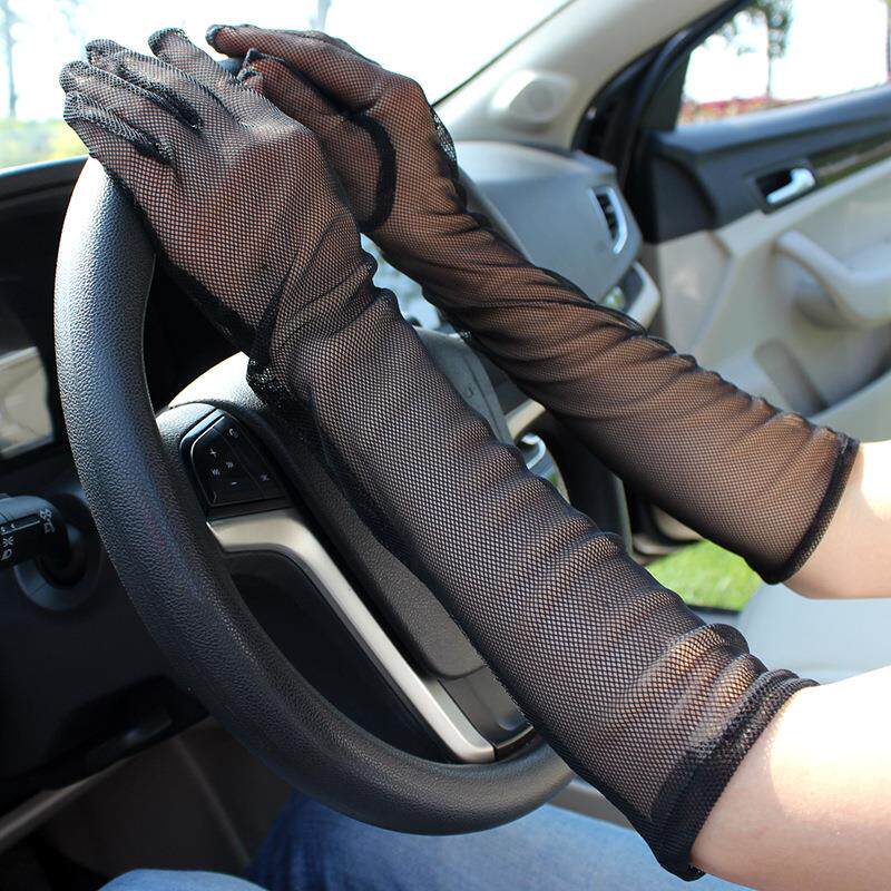 Черные кружевные перчатки Длинные летние женское вождение Ультра -тонкое солнцезащитное элегантное и тонкий на открытом воздухе на открытом воздухе экран