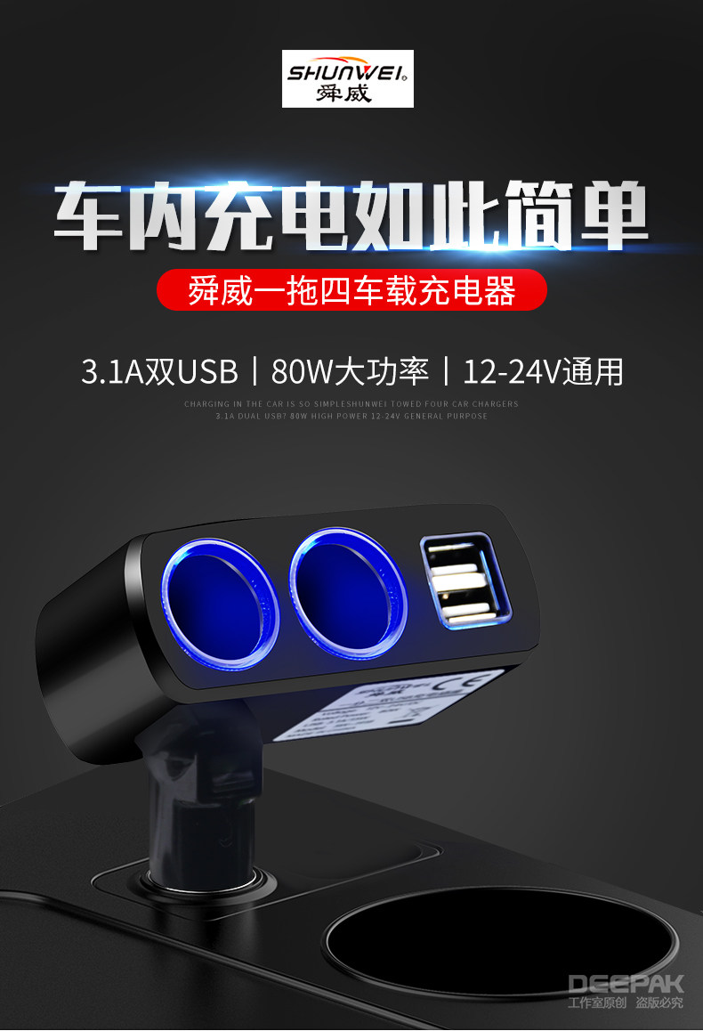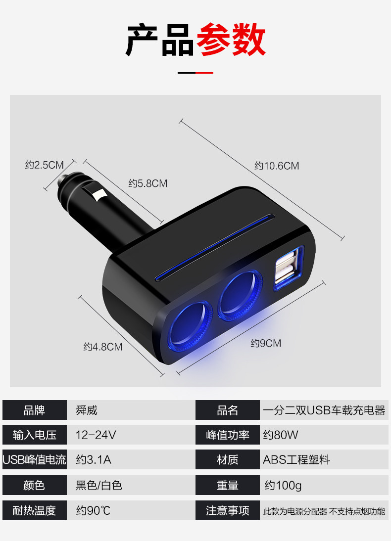 • [1] Black [Double USB Fast Charge+Double -точный сигаретный порт+атмосфера света] Мобильный телефон/планшет и т. Д.