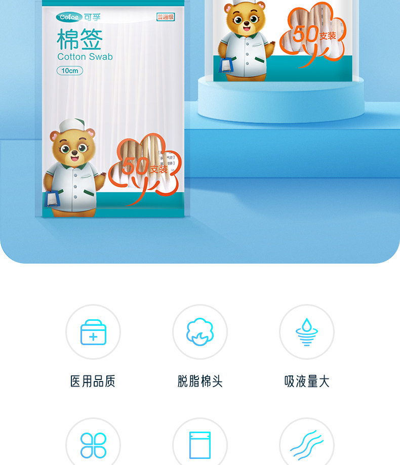Антибактериальные одноразовые ватные палочки, детская гигиеническая ухочистка