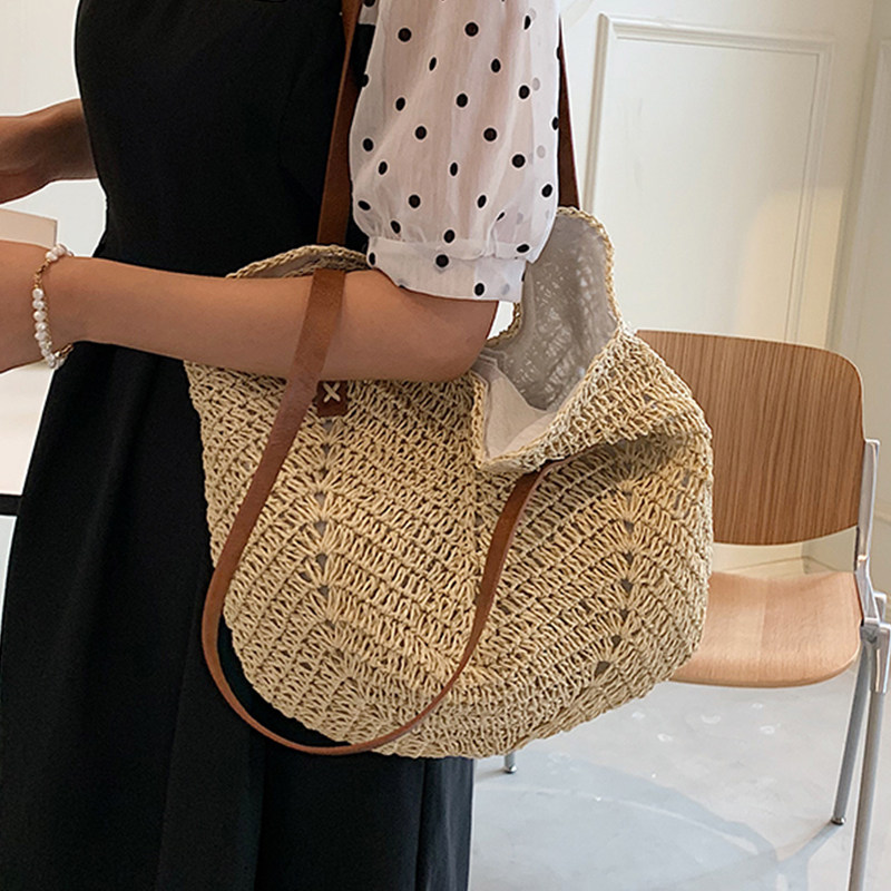 Зимняя модная вместительная и большая плетеная соломенная сумка через плечо на одно плечо для отдыха, популярно в интернете, коллекция 2022