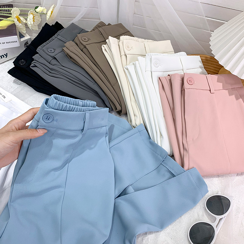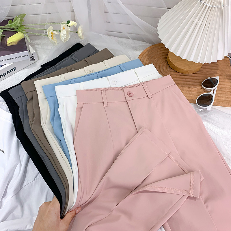 Приталенный костюм, весенние штаны, изысканный стиль, высокая талия, свободный прямой крой