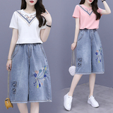 Джинсовые летние штаны, ретро футболка, оверсайз, высокая талия