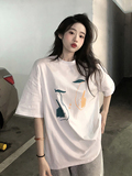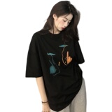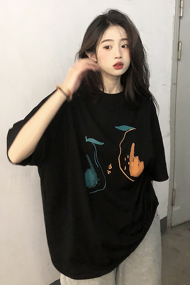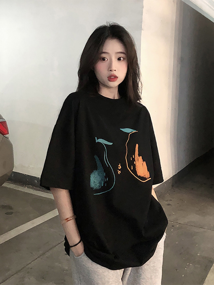 Летняя хлопковая дизайнерская черная футболка с круглым воротником, короткий рукав, свободный крой, тренд сезона