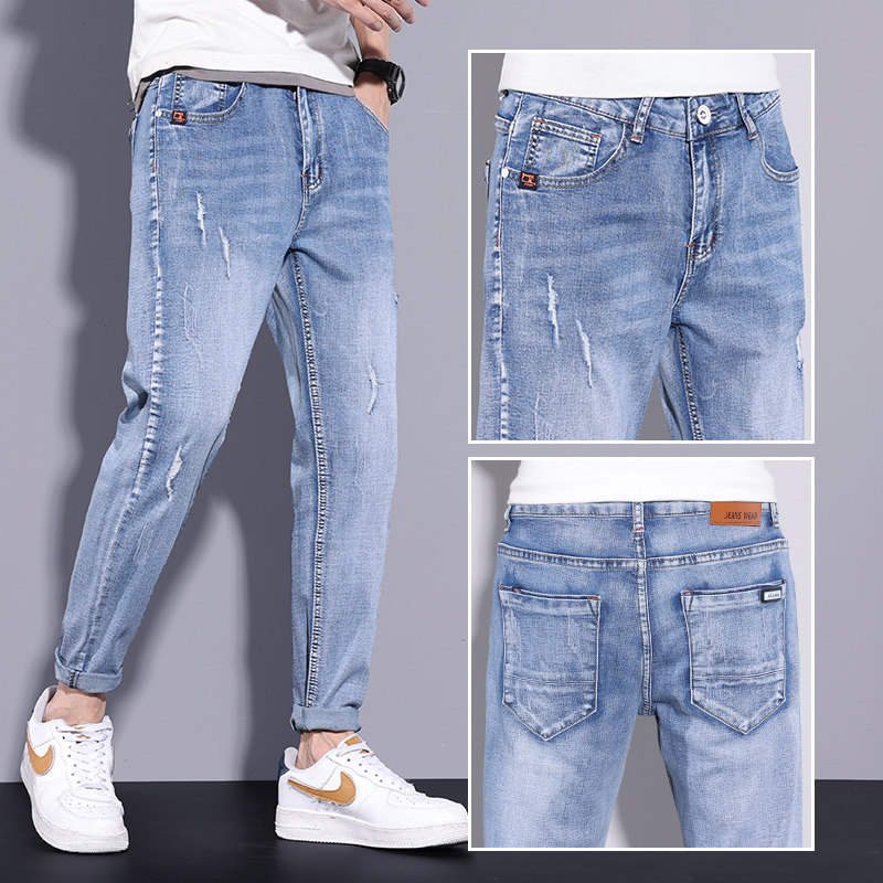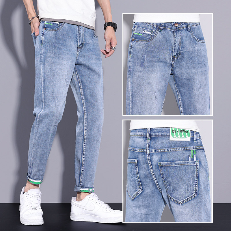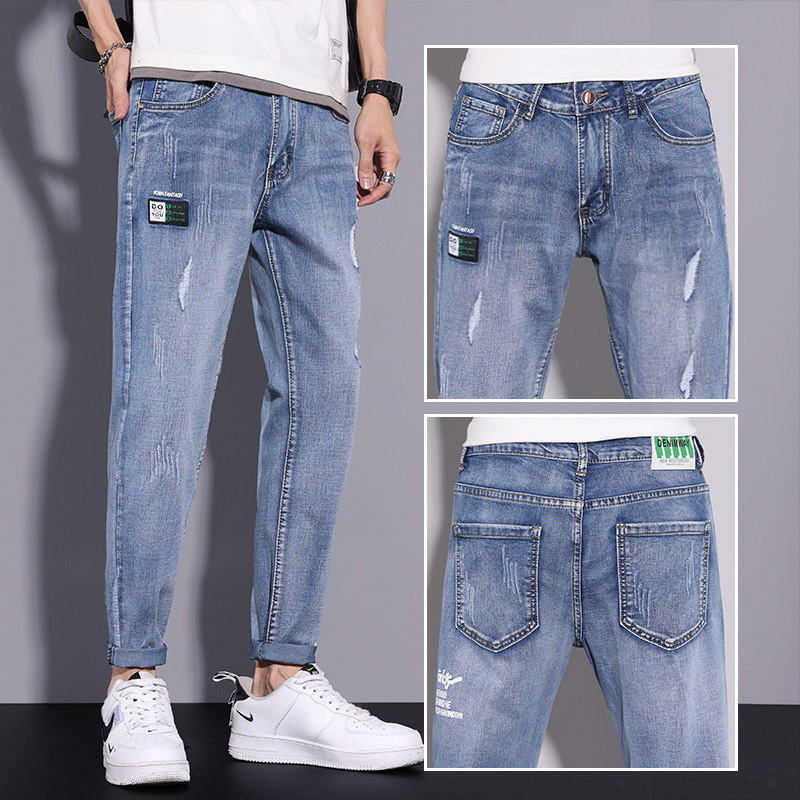 Мужские летние тонкие джинсы, универсальные трендовые осенние штаны для отдыха, свободный прямой крой