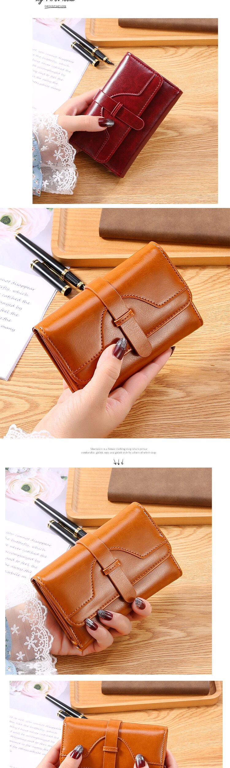 Японский бумажник, короткая модная сумка через плечо, складной кожаный кошелек, из натуральной кожи