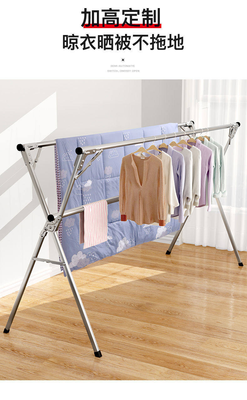 Складная сушилка для одежды, напольная, для дома, для балкона, для спальни, из нержавеющей стали, для улицы, крутая телескопическая штанга, артефакт для сушки одеяла